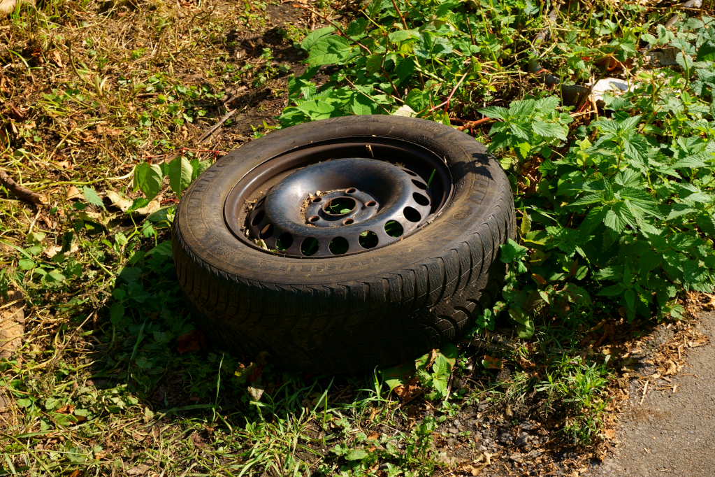 Die abgefahrene Strecke ist ein kurzes Teilstück meines Weges zur Arbeit, deshalb hatte ich die Autoräder (Felgen mit Reifen) schon am Tag zuvor bemerkt.