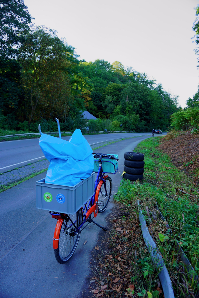 Mit Absprache des Betriebsamtes hatte ich alle 4 Räder schön am Rand des Radweges drapiert, damit sie von den Mitarbeitern eingesammelt werden können.
