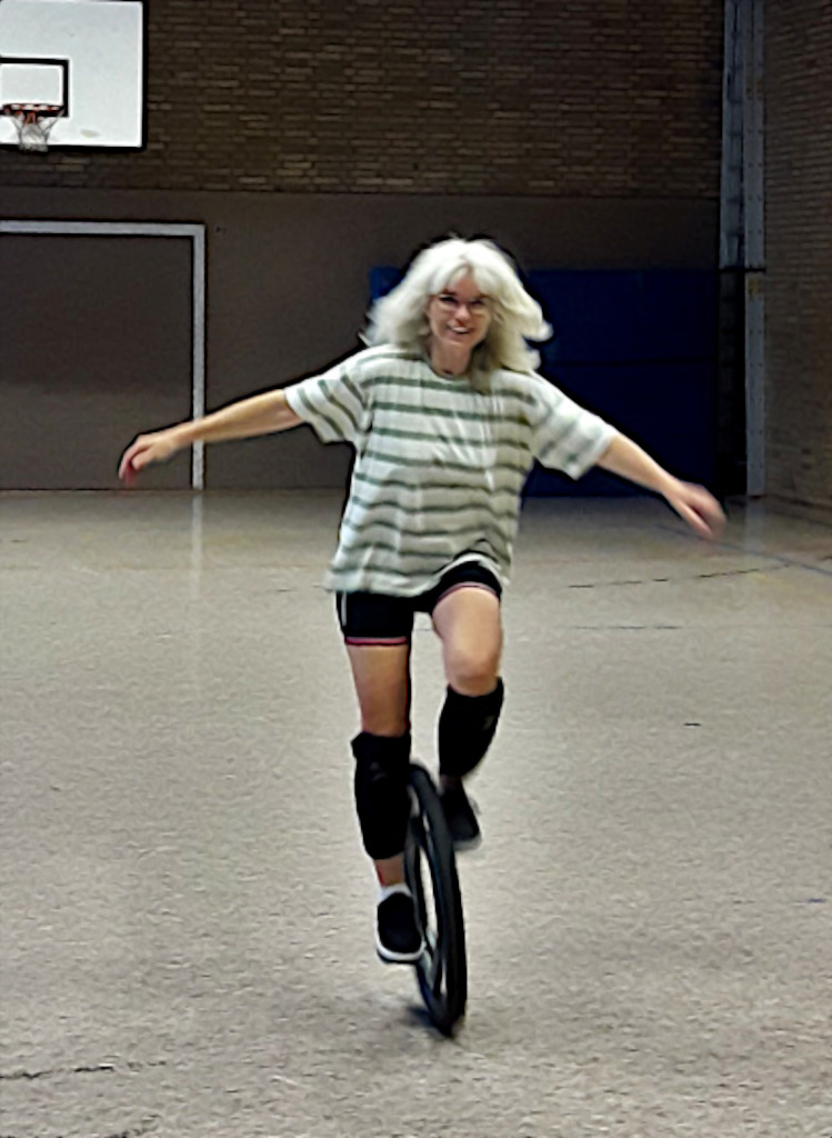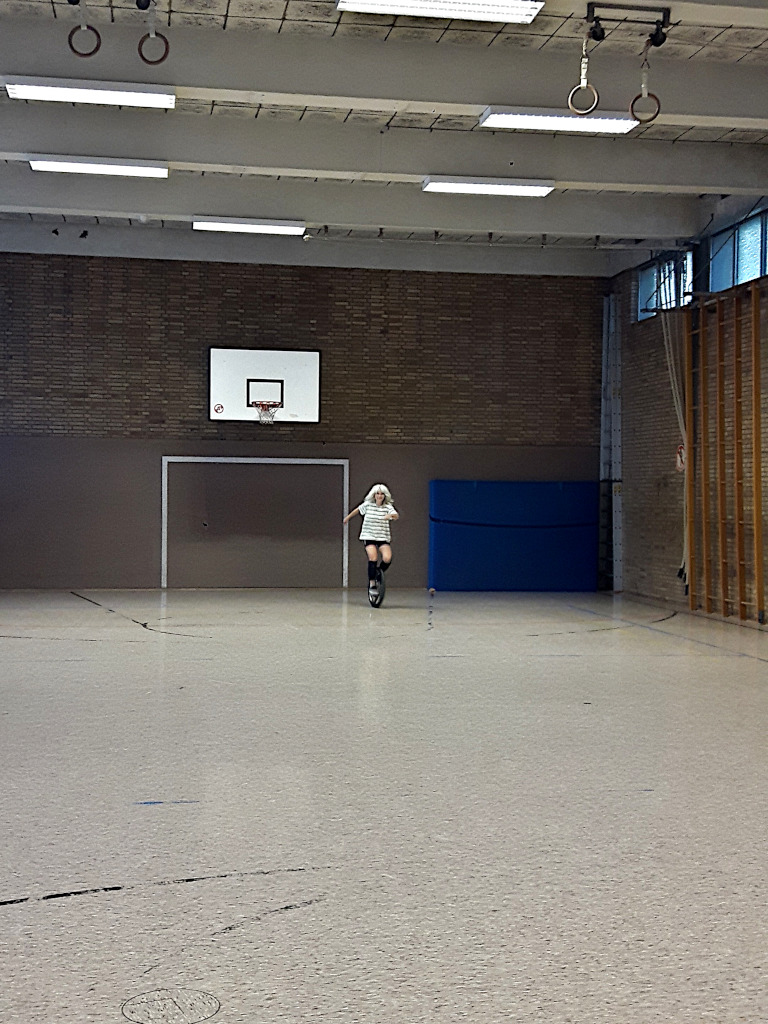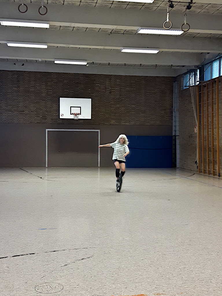 Abends ging es dann zum ersten Mal, seit gefühlten Ewigkeiten, wegen Corona zum Einradtraining in die Sporthalle. Der hübsche Lastesel diente als Beförderungsfahrzeug