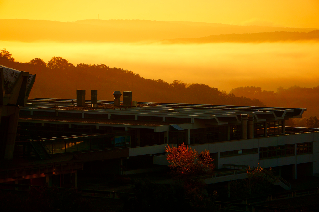 Als es schon ziemlich hell war, hatte ich nochmal die Kamera angeschmissen und konnte die schöne herbstliche Stimmung mit der Nebelbank über dem Ruhrtal einfangen.