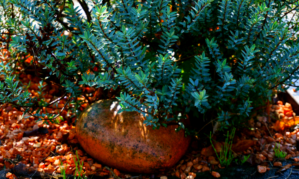 Ach ja, die schlichte Dauerbepflanzung des kleinen Urnengrabes hatte die Trockenheit zum Glück gut überstanden.