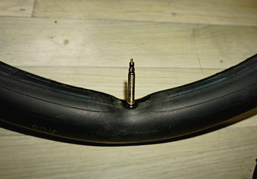 Im Vorderrad war ihm irgendwie die Luft abhandengekommen. Wie sich heraus stellte, war aber kein Loch im Schlauch.