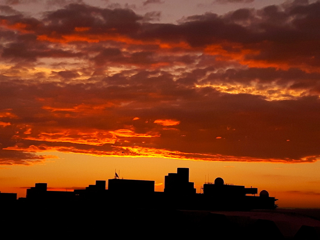 Den schönen Sonnenaufgang, der nur wenige Minuten andauerte, hatte ich letzte Woche aus dem Fenster auf der Arbeit aufnehmen können.