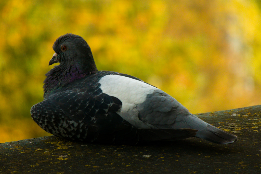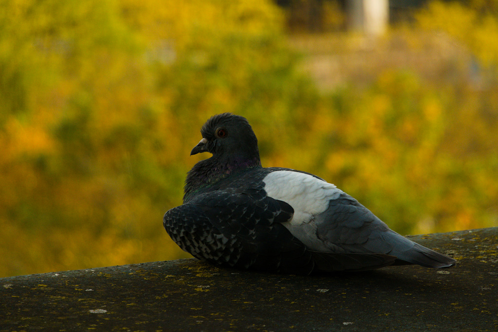 Die Taube hatte sich zu einer Mittagspause auf dem Geländer direkt vor meinem Fenster auf der Arbeit niedergelassen.