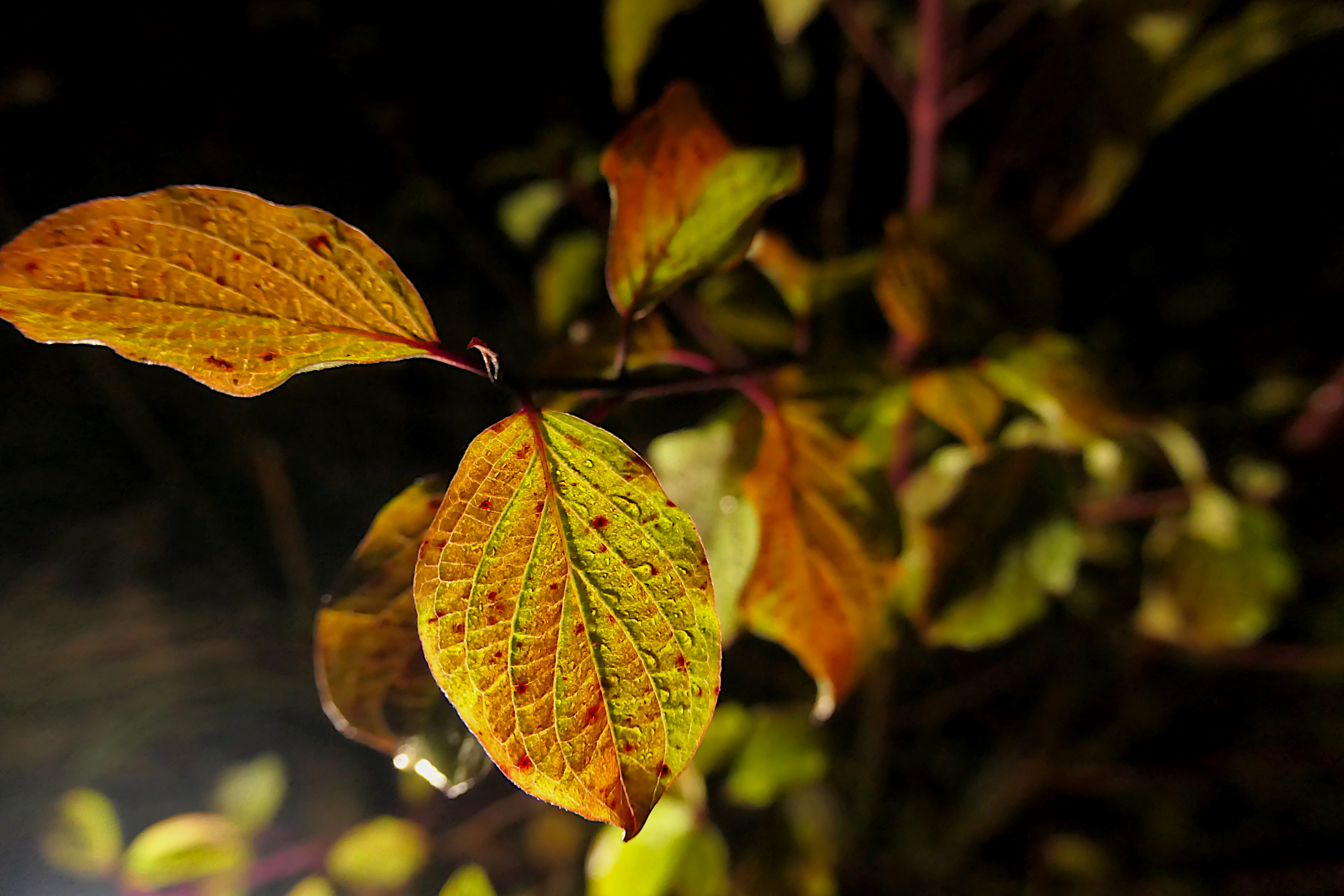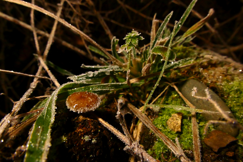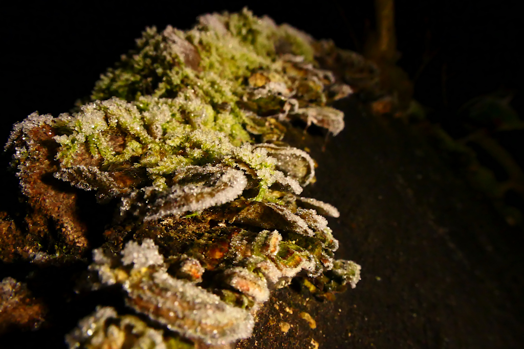 Durch den Raureif waren die wenigen bunten Blätter besonders hübsch anzusehen