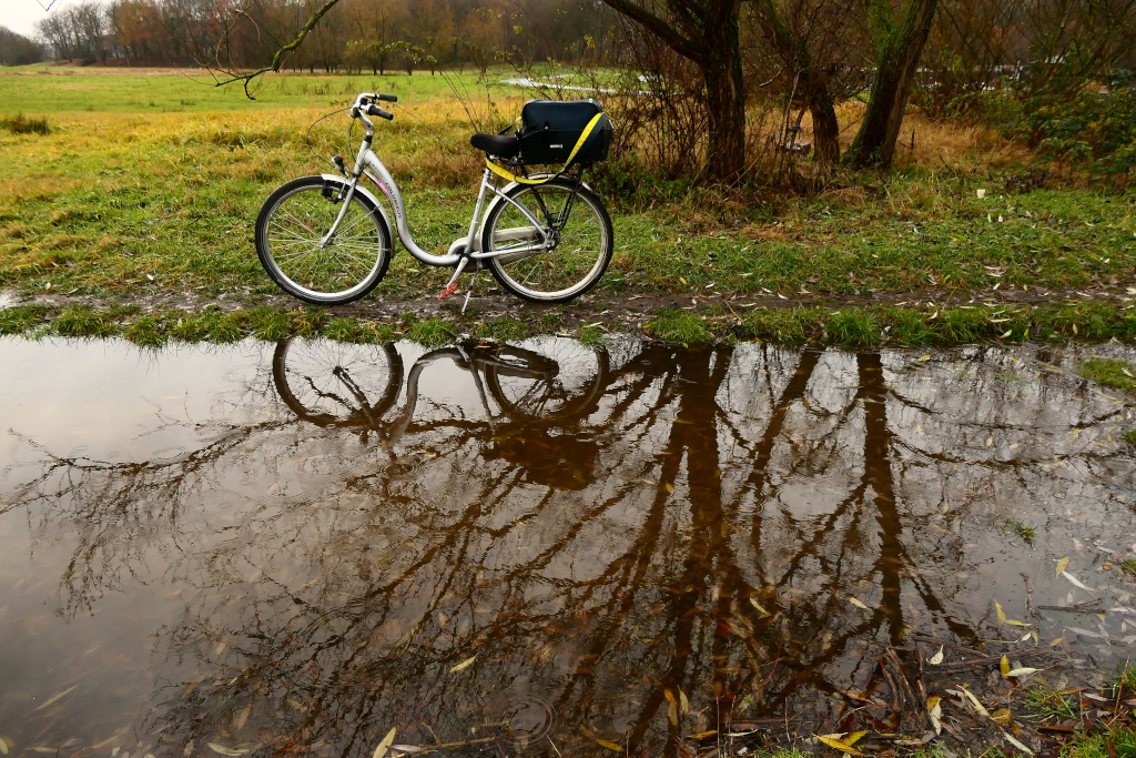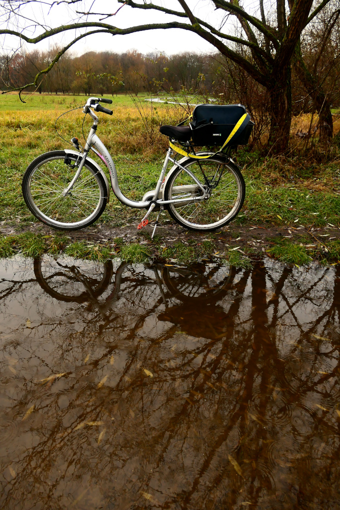 Also ging es an dem Tag mit gebremsten Tempo nach Hause, dabei hatte ich ihn als Dekoration noch mit ins Bild gestellt. Selbst große Pfützen können schöne Spiegelungen beim Fotografieren auslösen.