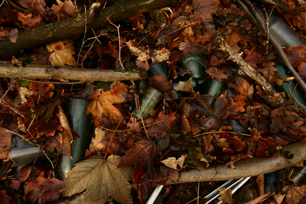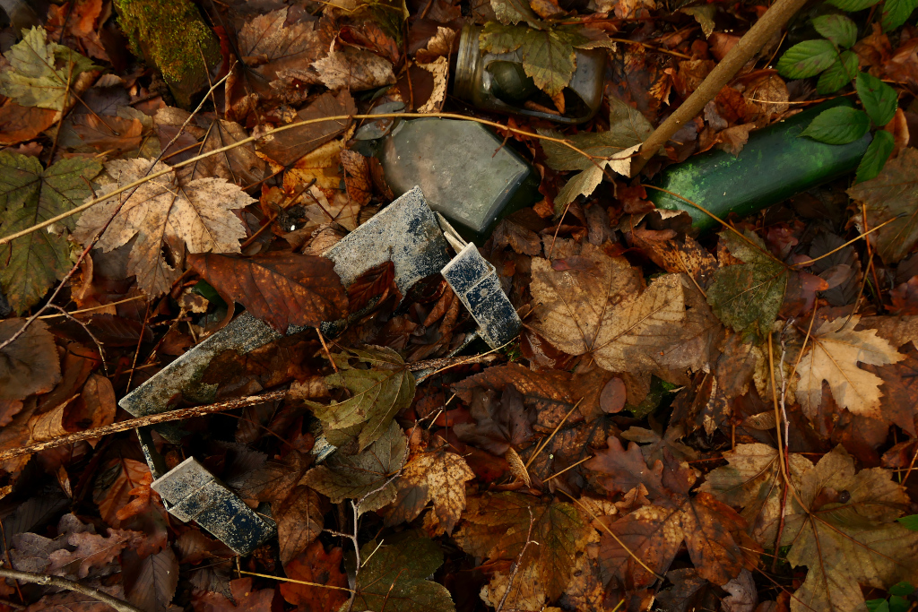Am schlimmsten war die Flaschen- bzw. Scherbendeponie, die hinter mehreren der dickeren Bäumen versteckt lag.