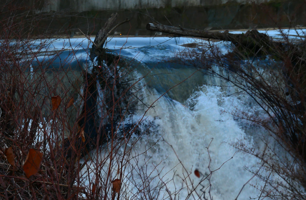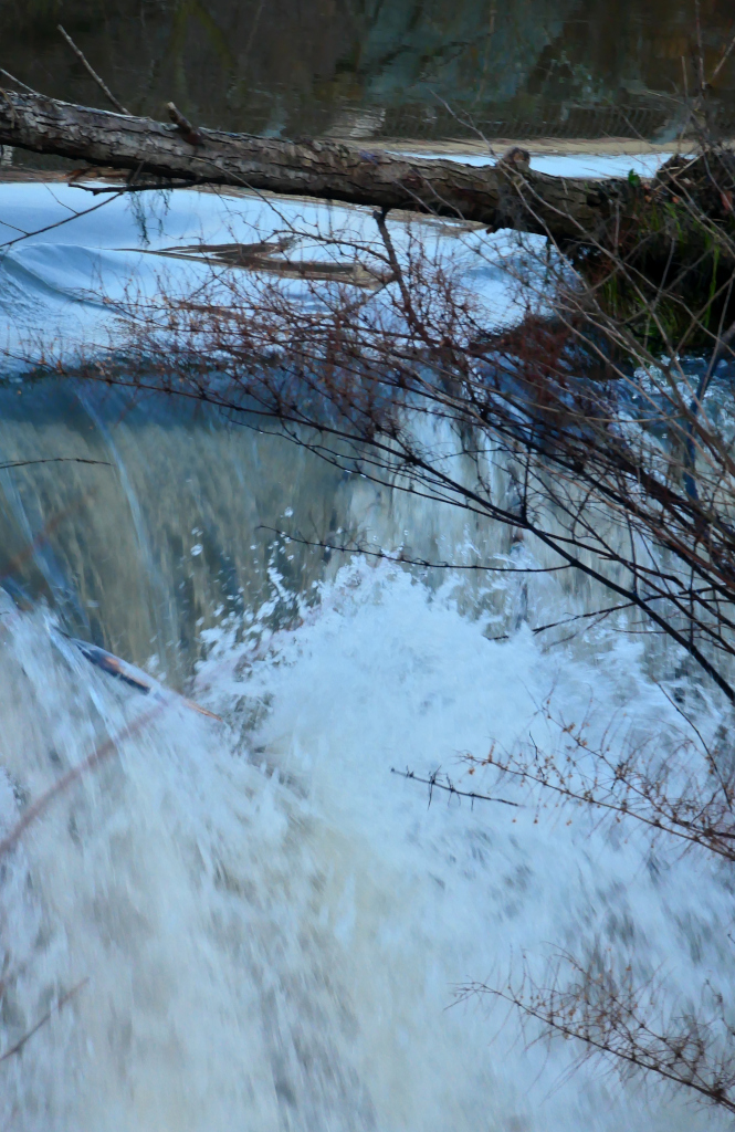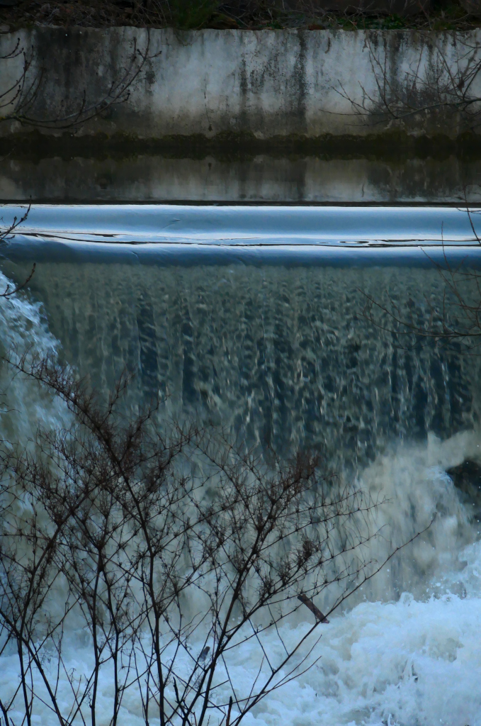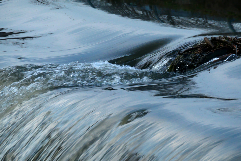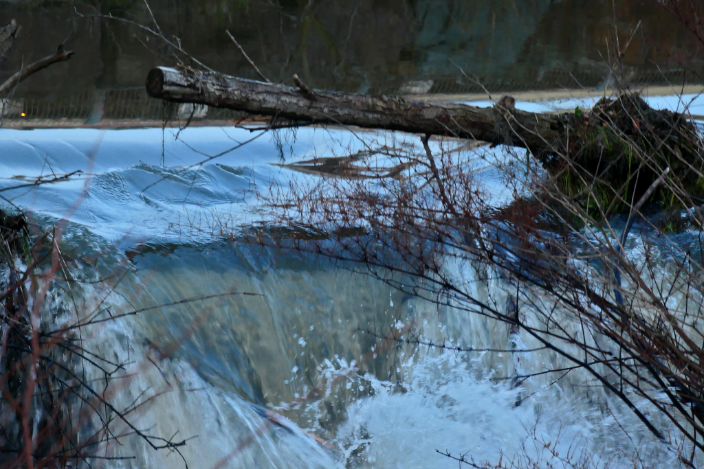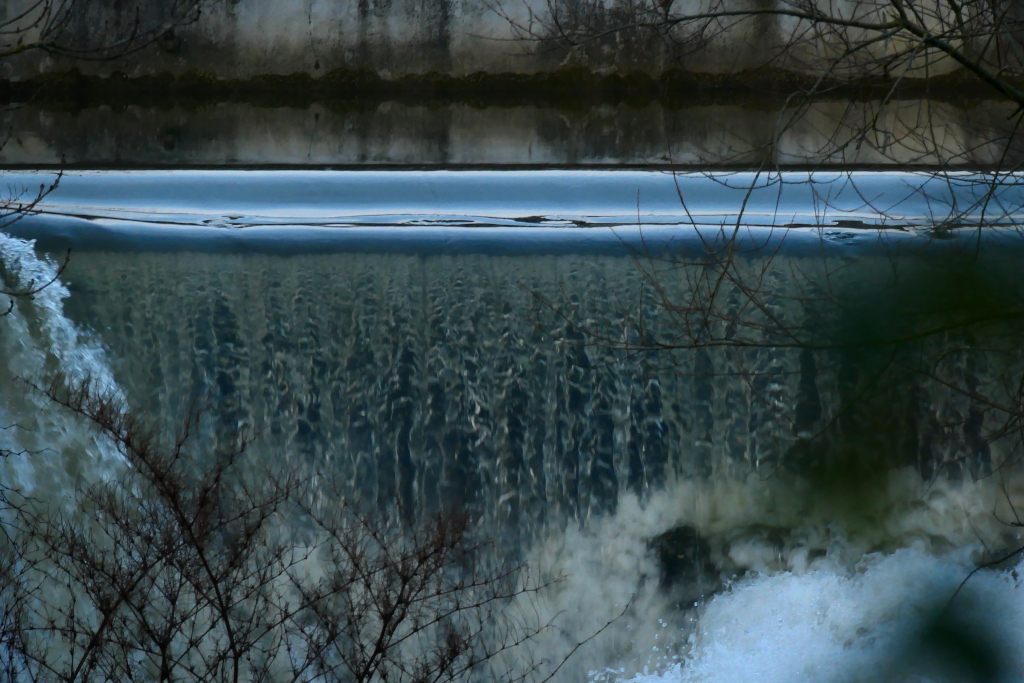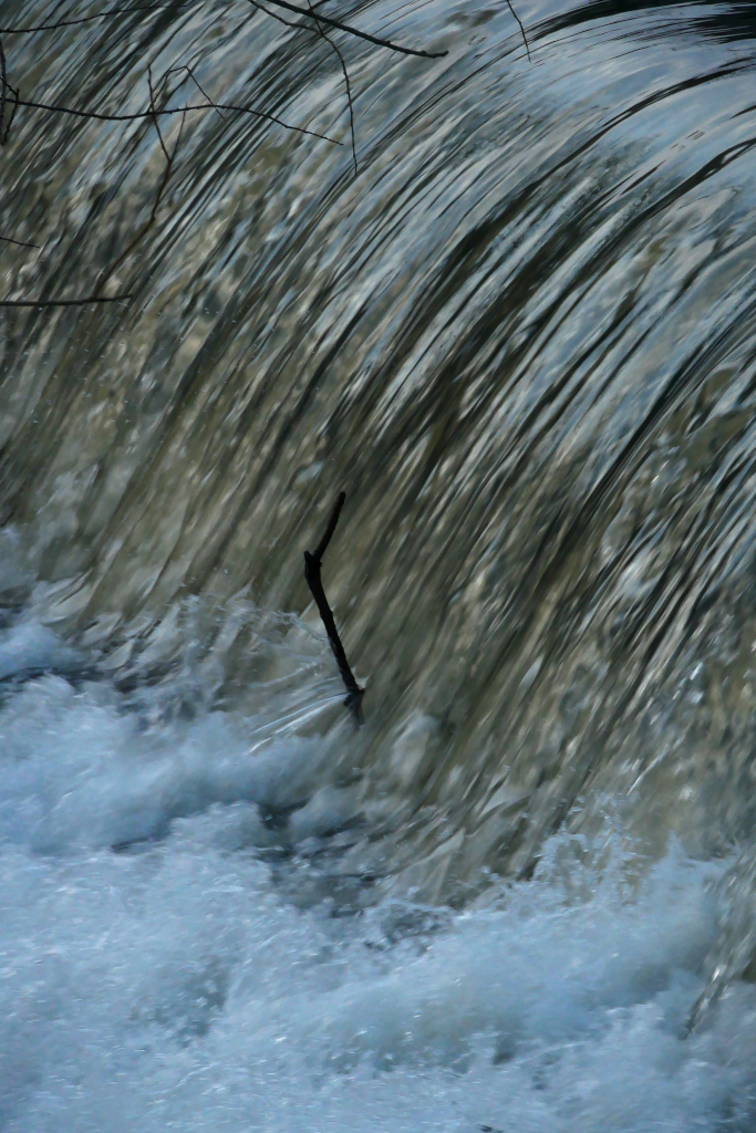 Am Mühlengraben war das Stautor, wegen des leichten Hochwassers geöffnet und auch über dem Überlauf, floss das Wasser mit der Geräuschkulisse eines Wasserfalls hinab.