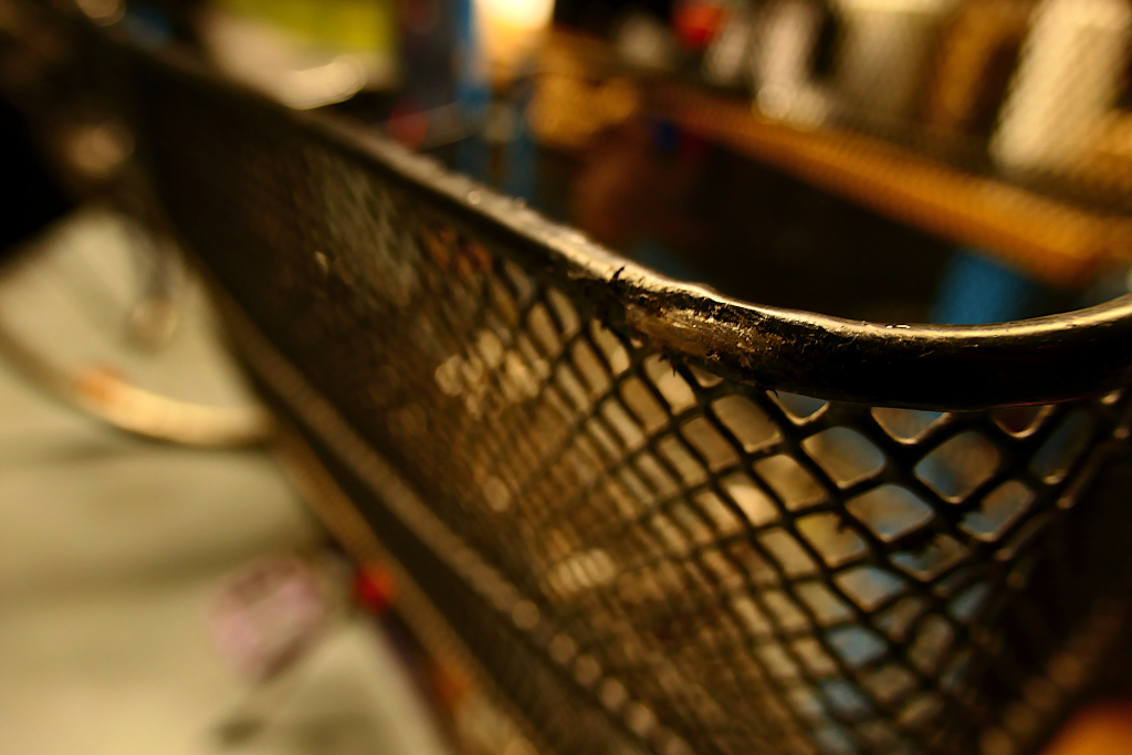Bei der blauen Rappelkiste hatte der vordere Fahrradkorb eine etwas komische Form angenommen und war an der unteren Befestigung abgebrochen. Am hinteren Korb und an dem Lenkergriff waren nur kleine Kratzspuren zu beklagen.