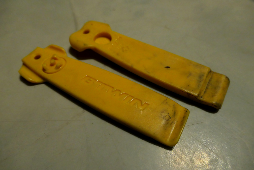 Mit den Reifenabziehern hebelte ich den Reifen über die Felge und zog anschließend den Schlauch heraus.