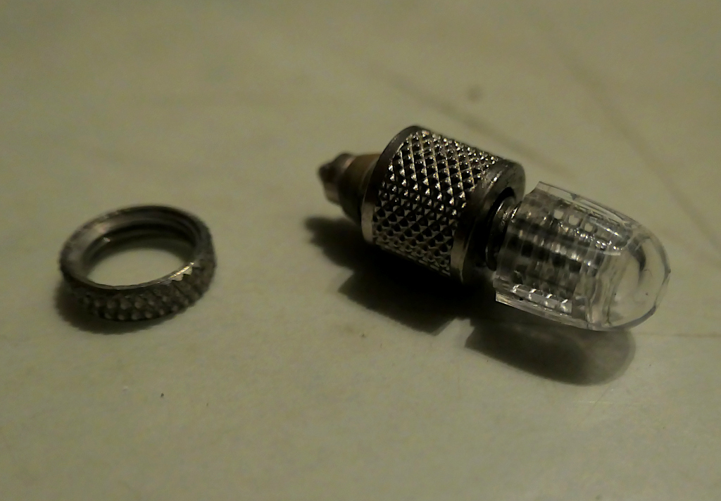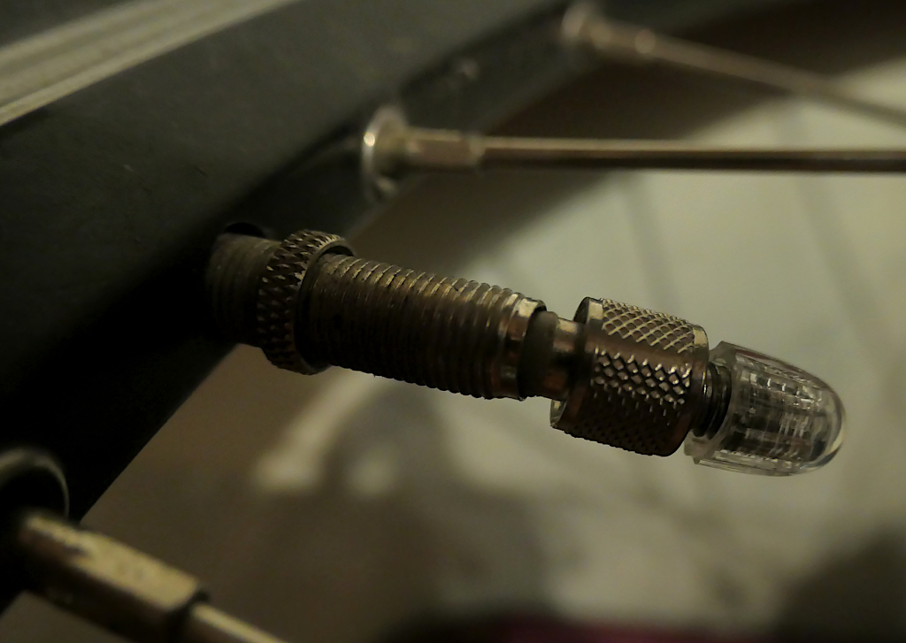 Danach wurde das Ventil und der Schraubring am Ventilschafft (keine Ahnung, wie da der Fachbegriff lautet) abgedreht, damit der Ventilschafft durch das Loch der Felge passt.