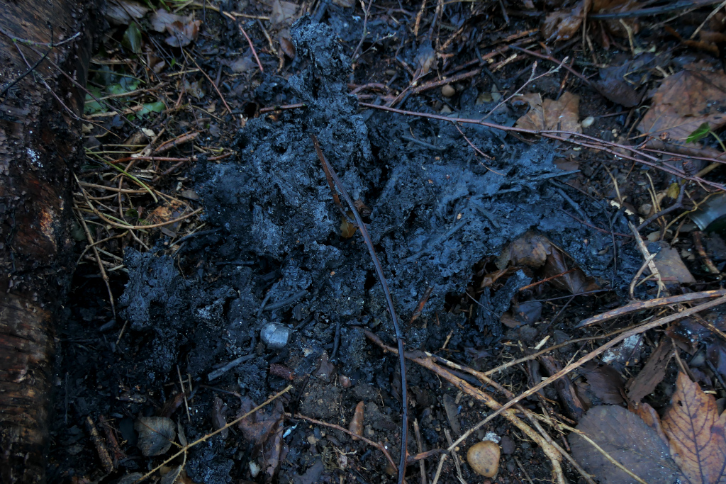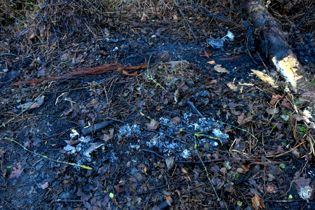Ich hatte bisher ja schon viele ungewöhnliche Müllfunde gehabt. Aber dass jemand nicht nur seinen Unrat in der Botanik verteilt, sondern auch gleich noch anzündet, war mir auch noch nicht untergekommen.