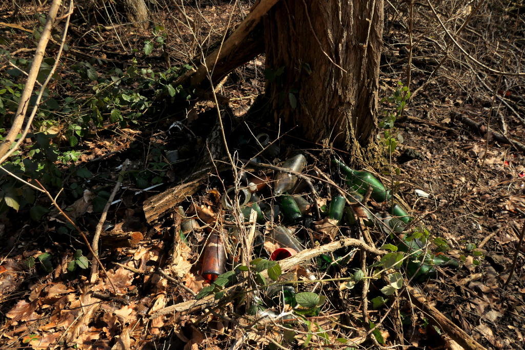 Die Glasdeponie hinter einem Baum konnte ich leider nicht mehr beseitigen, da ich keinen Müllsack mehr übrighatte, die ist dann beim nächsten Mal mit dabei.