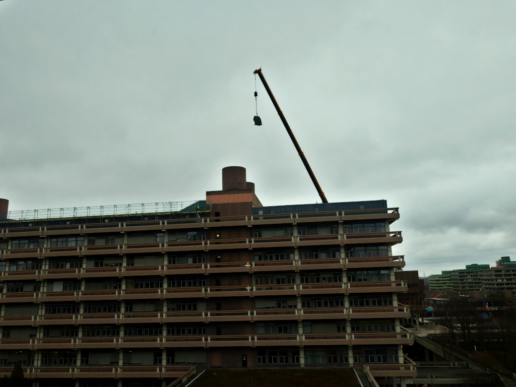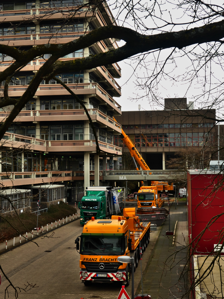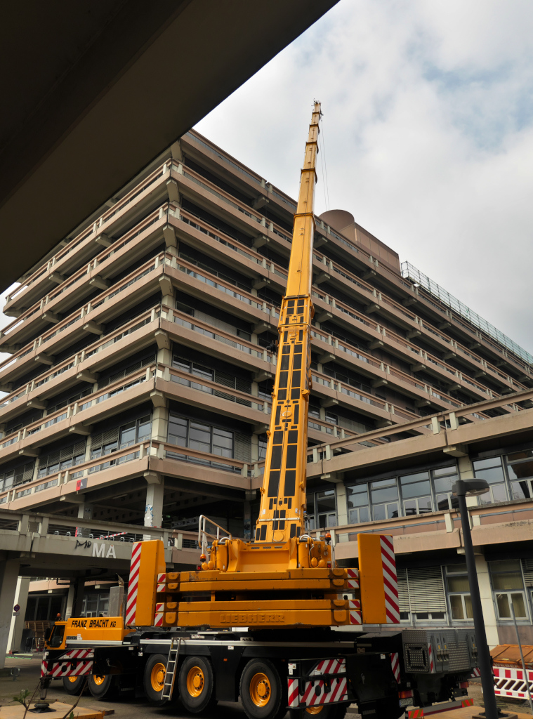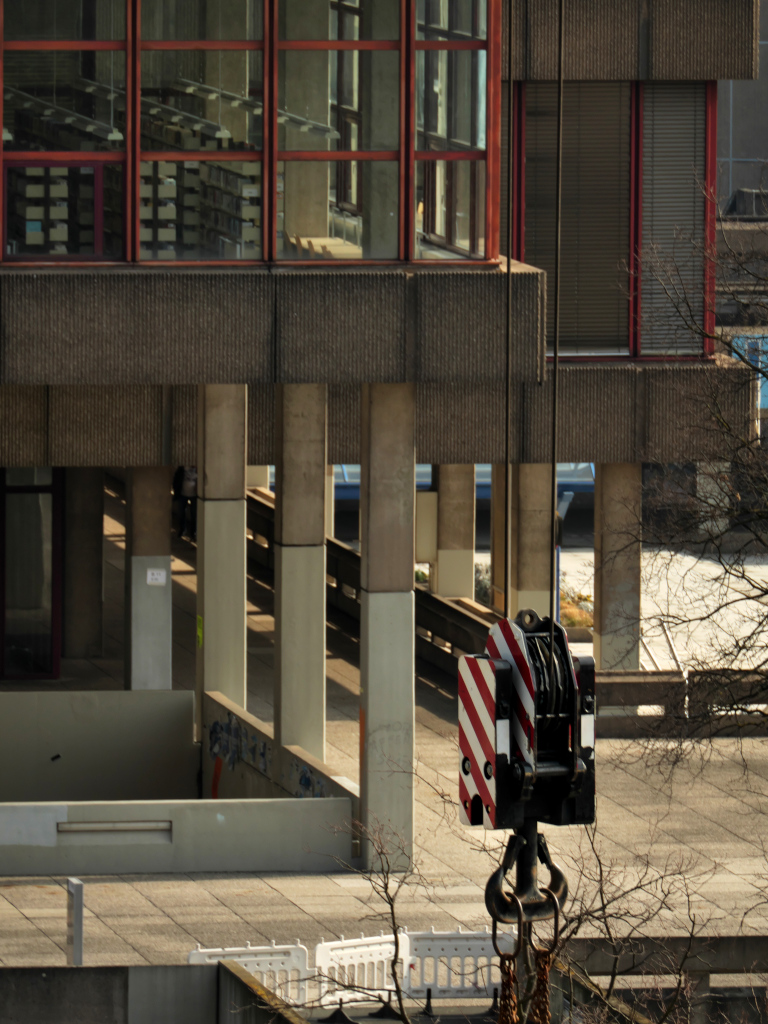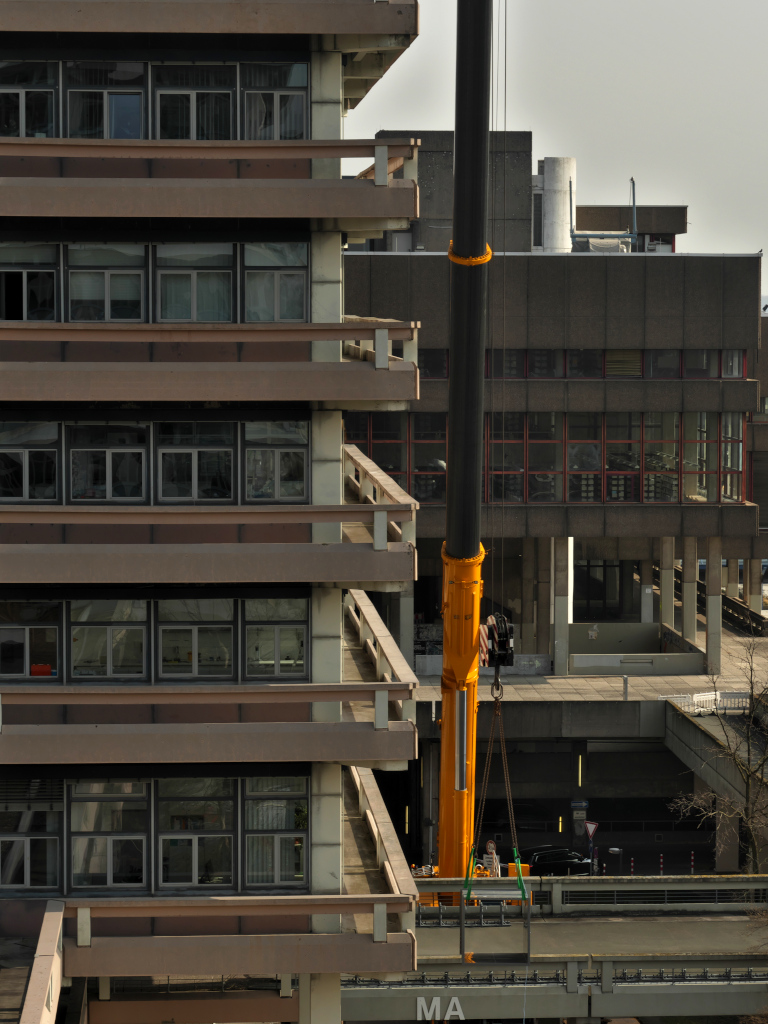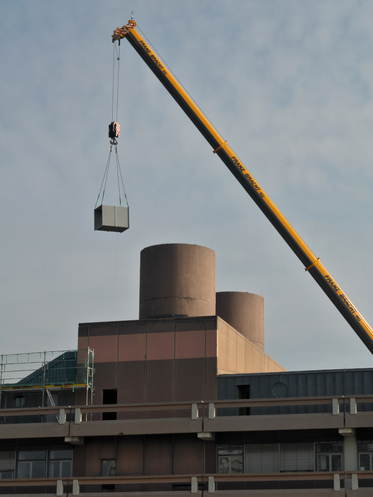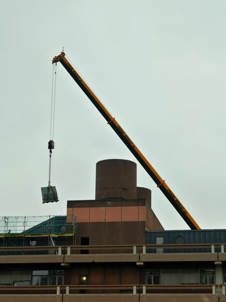 In dieser Woche wurden wir auf der Arbeit immer wieder mal durch den riesigen Kranausleger abgelenkt, der auf dem gegenüberliegenden Gebäudedach große Teile für einen neuen Lüftungsschacht ablud.