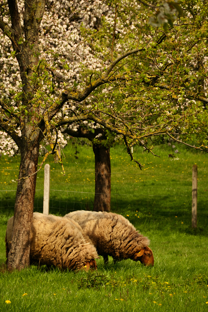 Die Schafe hatten sich zunächst über seinen Temperamentausbruch erschrocken und schauten anschließend dem Schauspiel in sicherer Entfernung zu.