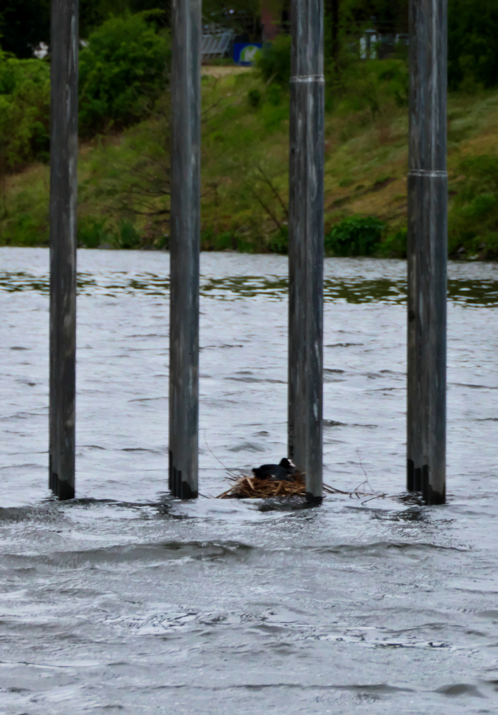 Seit bestimmt knapp zwei Wochen, sitzen die Schwandame und Frau Tauchhuhn schon auf ihren Nestern, an diesem Morgen, dem Wind schon voll ausgesetzt.