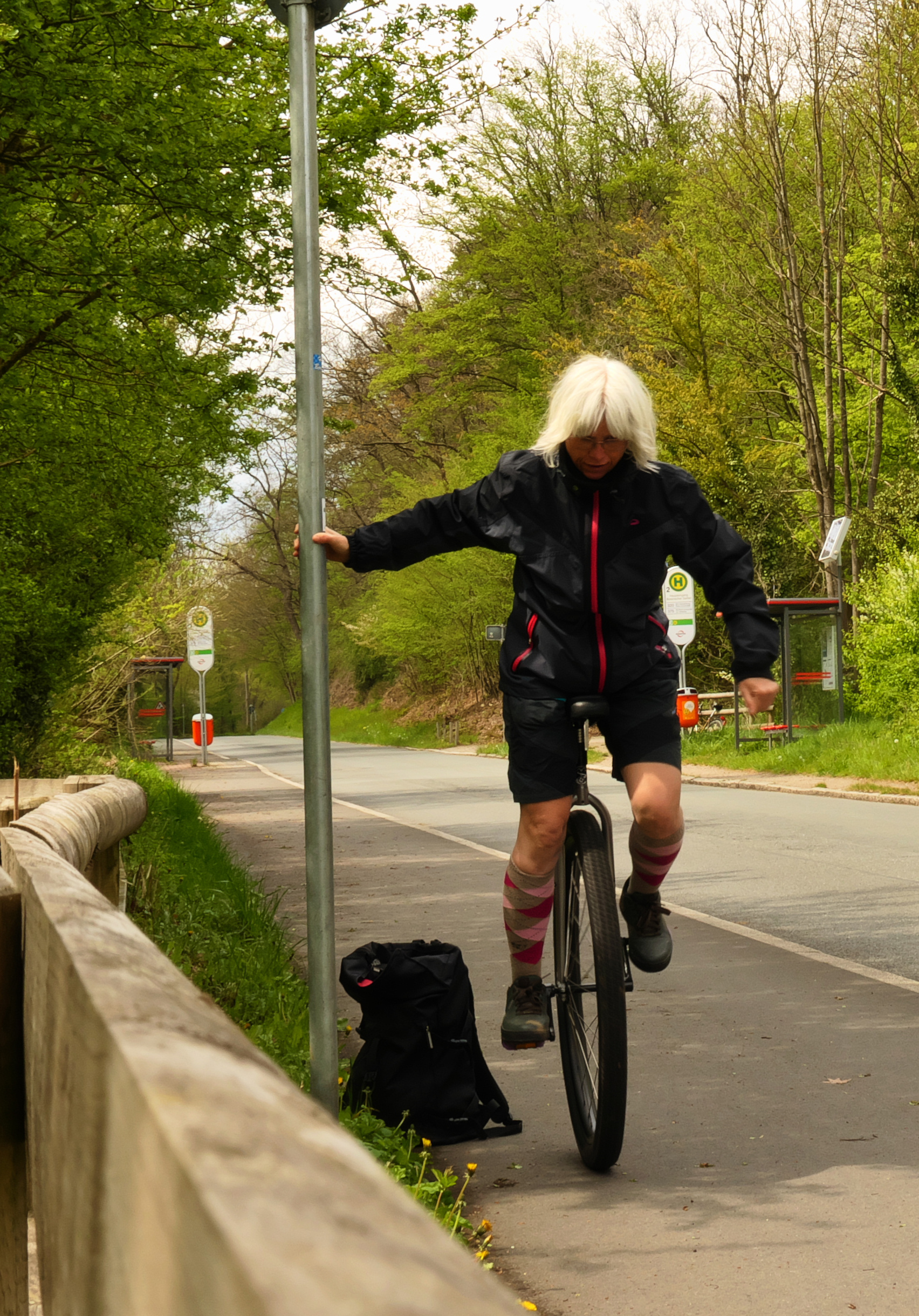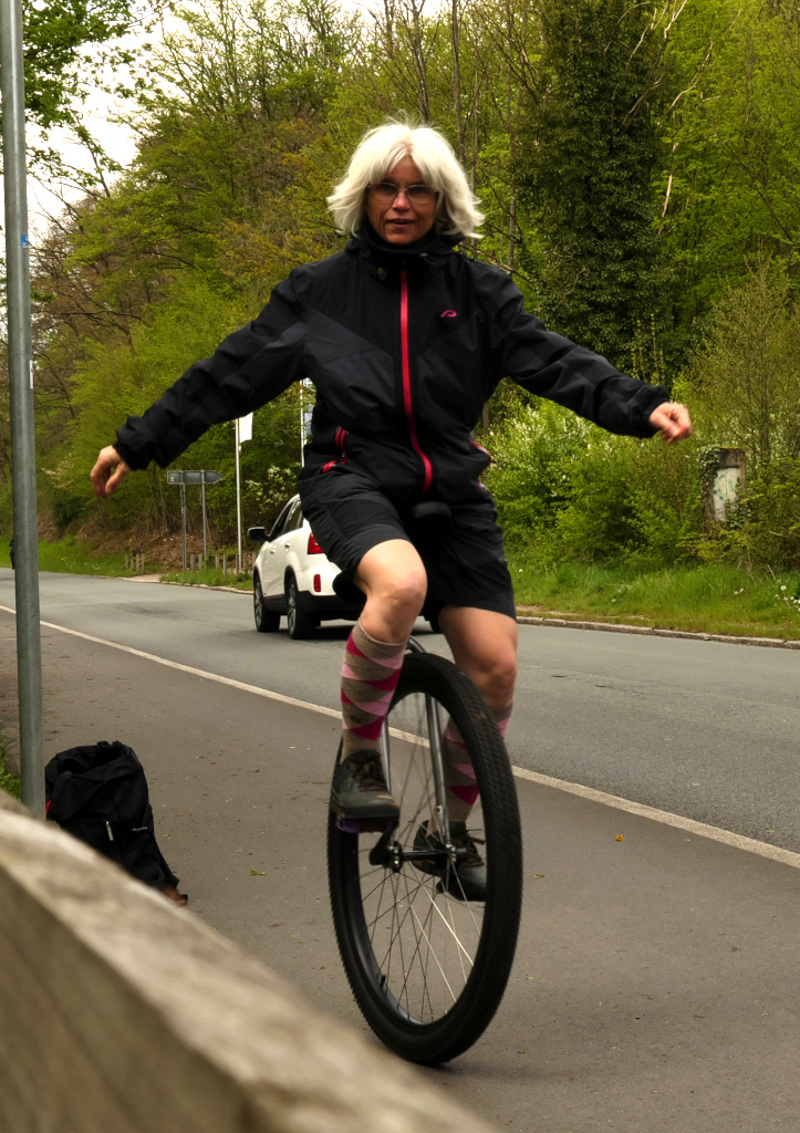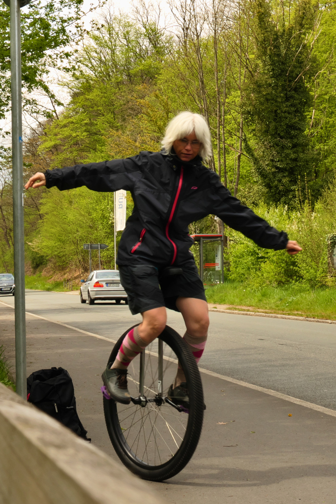 Elegant sind die Bilder zwar nicht geworden, weil die 10 Sekunden des Selbstauslösers doch recht kurz waren, aber immerhin könnt ihr mich mal auch auf dem Einrad sehen.