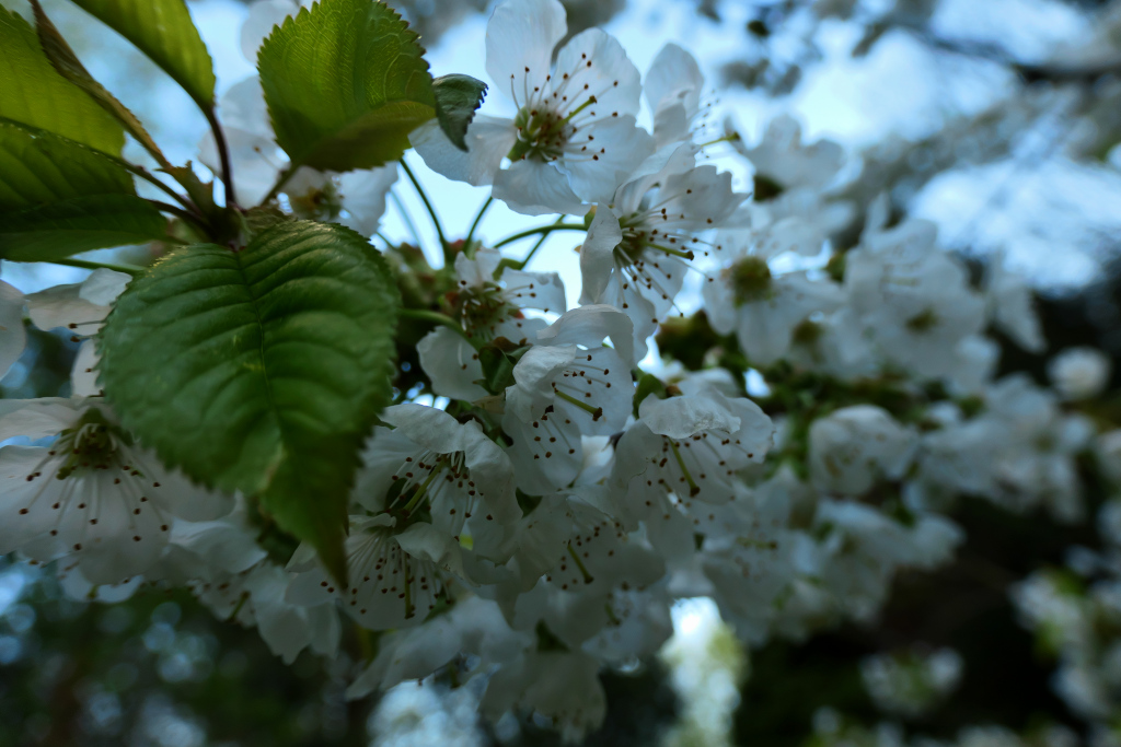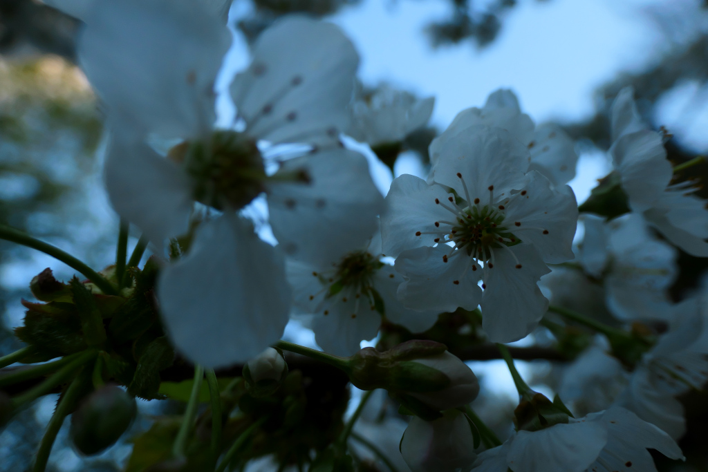 Bei meiner gestrigen Abendrunde kam ich an den Blüten meines Kirschbäumchens im Garten nicht vorbei.
