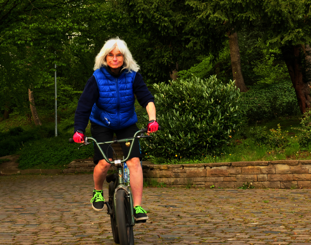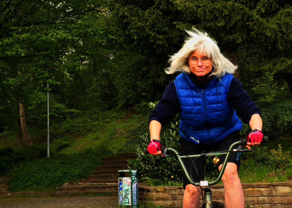 Mein lieber Nachbar hatte mich dankenswerter Weise auf unserem Garagenhof mit seinem Handy geknipst. So könnt ihr Penny und meine Wenigkeit in Aktion sehen.