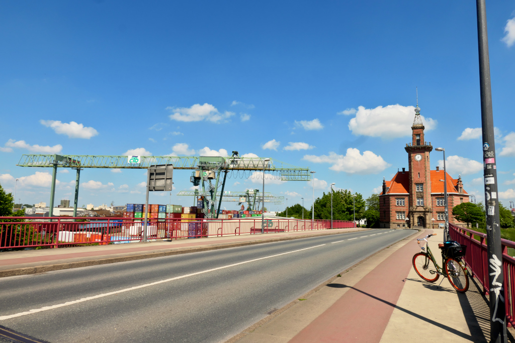 Danach war ich am Containerhafen entlanggefahren und konnte die großen Kräne bei ihrer Arbeit beobachten.