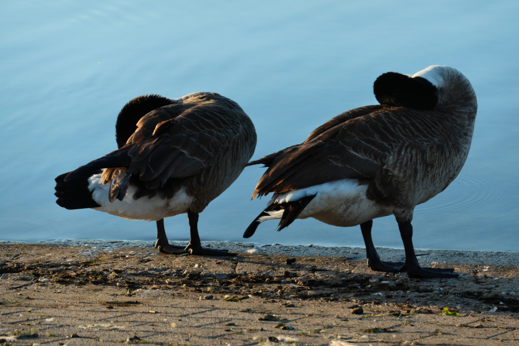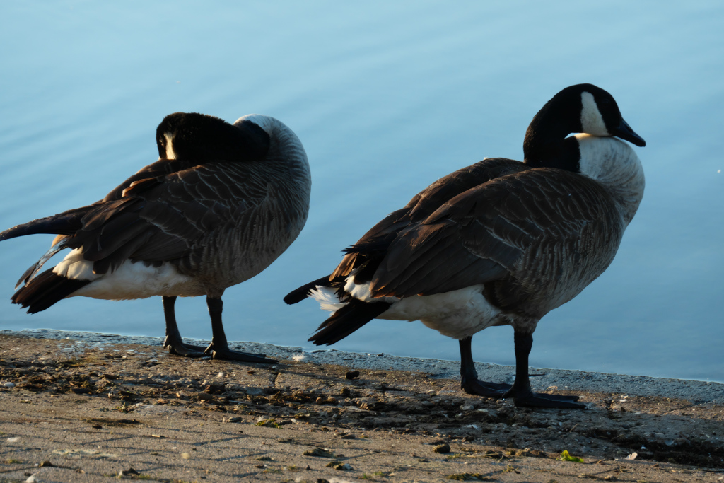 Die Gänse direkt daneben taten das Gleiche, nur der schöne Erpel hatte den Schlaf noch nicht aus.