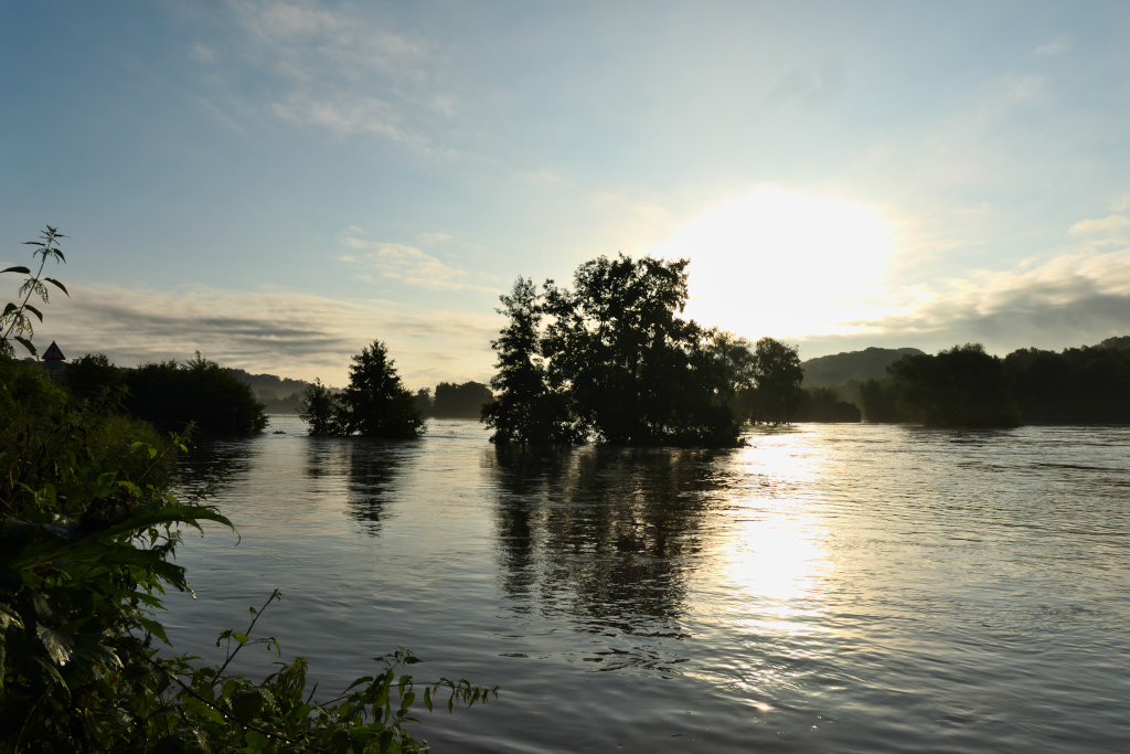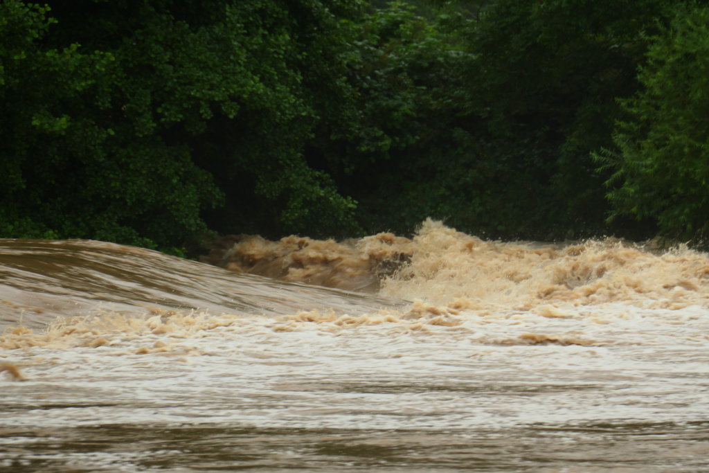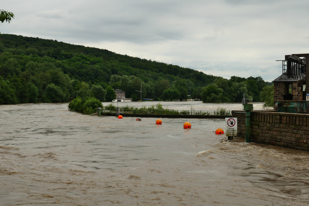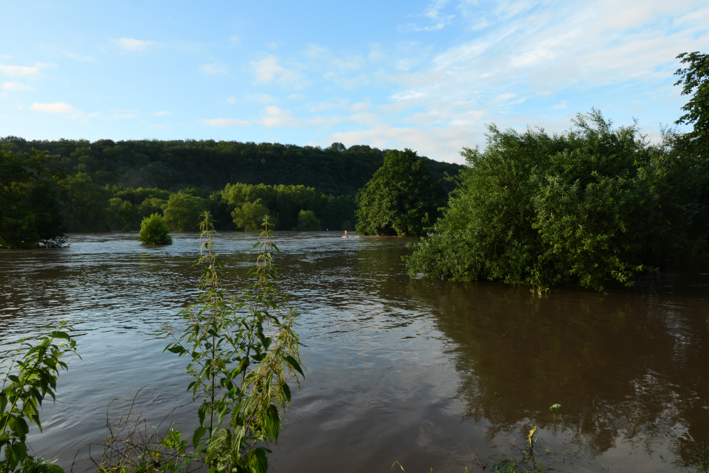 Am Mittwoch den 14 Juli war der Wasserstand der Ruhr schon ziemlich hoch, aber sie war noch in ihrem Flussbett.
