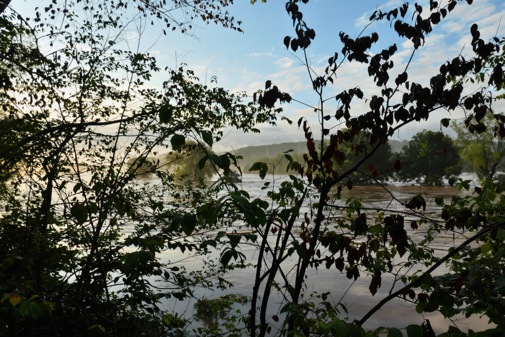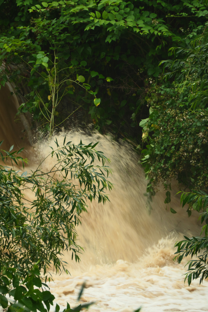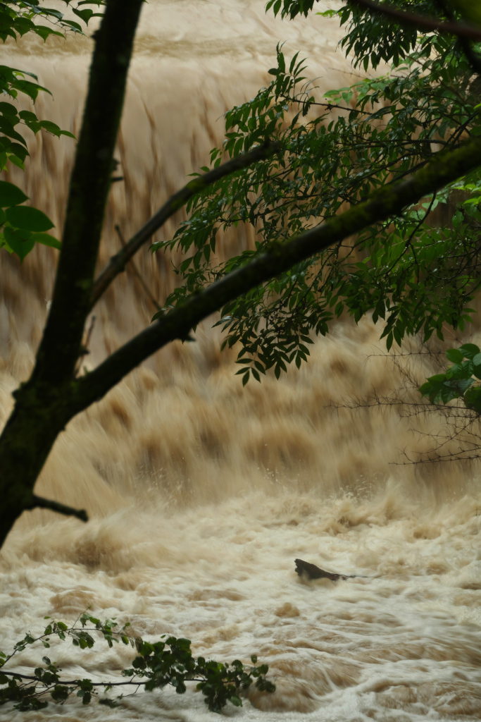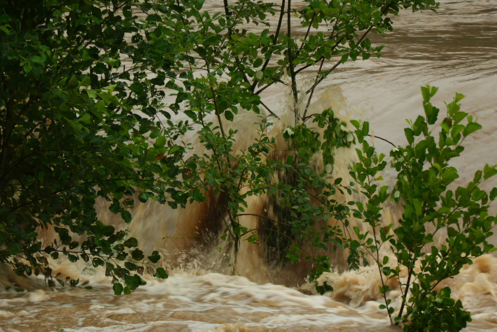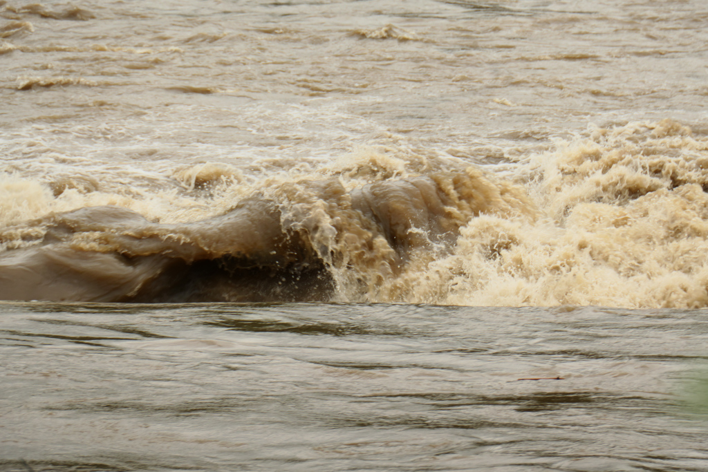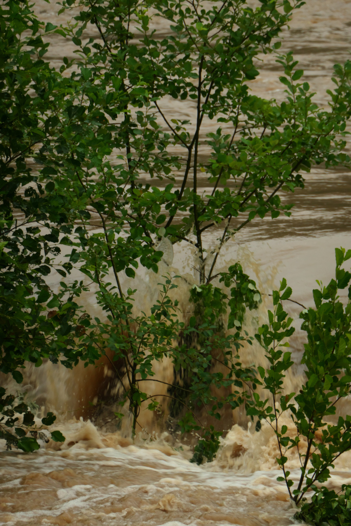 Im Vergleich zu morgens war das Wasser schon mit Sedimenten bräunlich verfärbt und die Strömung war schon stärker geworden.