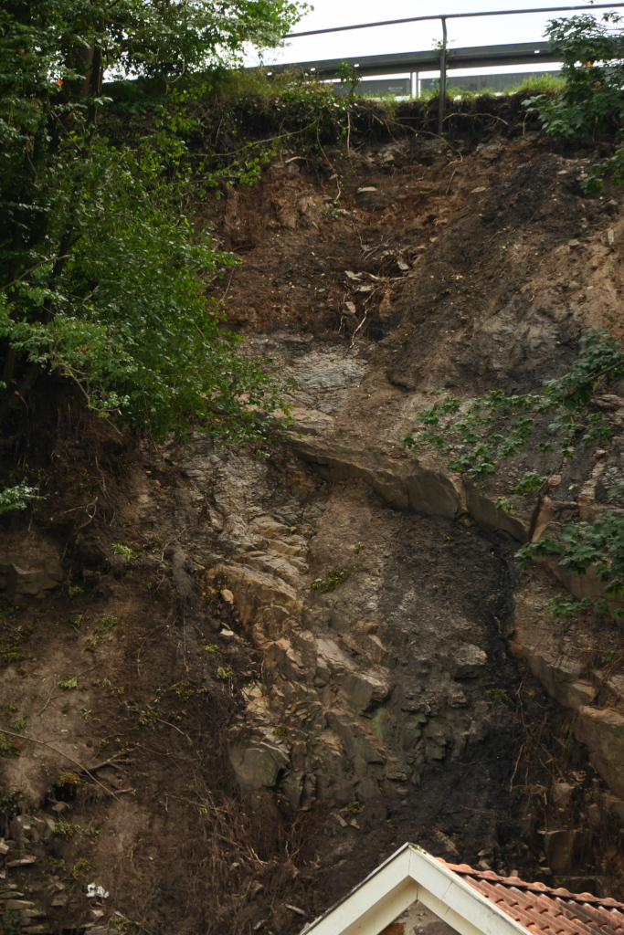 Als ich mit mit der blauen Rappelkiste losfuhr, traute ich meinen Augen nicht, als ich einen mächtigen Erdrutsch sah. Die Feuerwehr oder das THW hatten bereits die Straße wieder freigeräumt. Im Industriemuseum Zeche Nachtigall war noch ein zweiter und größerer Erdrutsch runter gekommen.