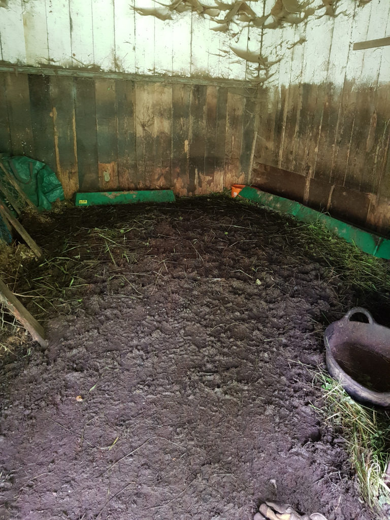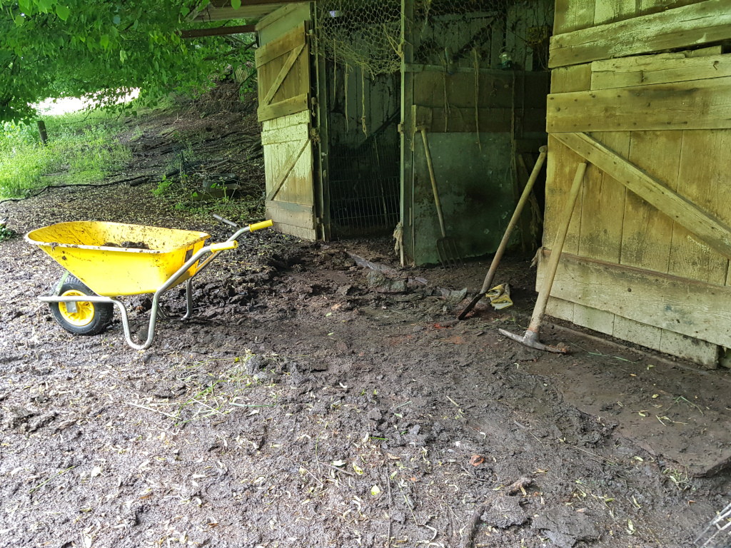 Am letzten Donnerstag war ich mit dem Ausmisten meines nassen Schafstalles endlich fertig geworden, meine Gartenhütte ist nur noch feucht, nicht mehr nass.