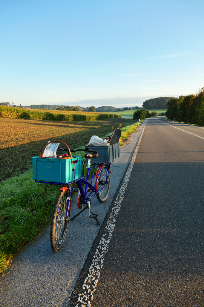 Als Transportfahrzeug hatte ich das blaue Lasteselchen ausgewählt, hier konnte ich ganz bequem das Skateboard und die Inliner in die hintere Kiste packen.