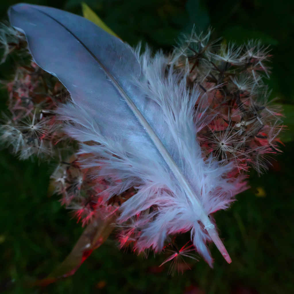 In meinem Garten lag eine Taubenfeder im Gras, da ich ja immer noch einen Online Fotokurs mache, kam es natürlich gleich wieder über mich wieder etwas Verrücktes mit der Kamera und dem Fahrradrücklicht an zustellen.