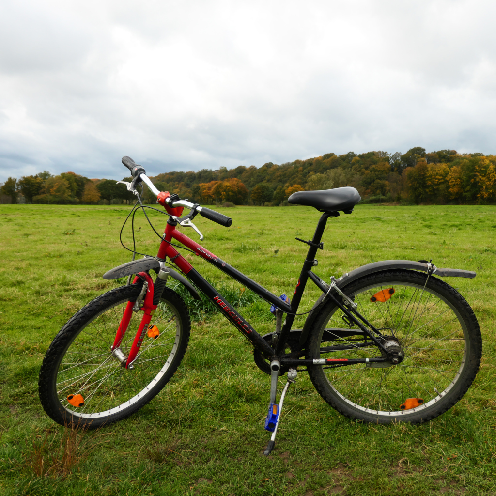 Nun brauchte ich einen fahrbaren Untersatz der möglichst wenig Windwiederstand und auch noch matsch- und und regenfest war. So kam das Möchtegern Moutainbike auch nach langer Zeit frisch aufgepumpt mal wieder aus dem Keller.