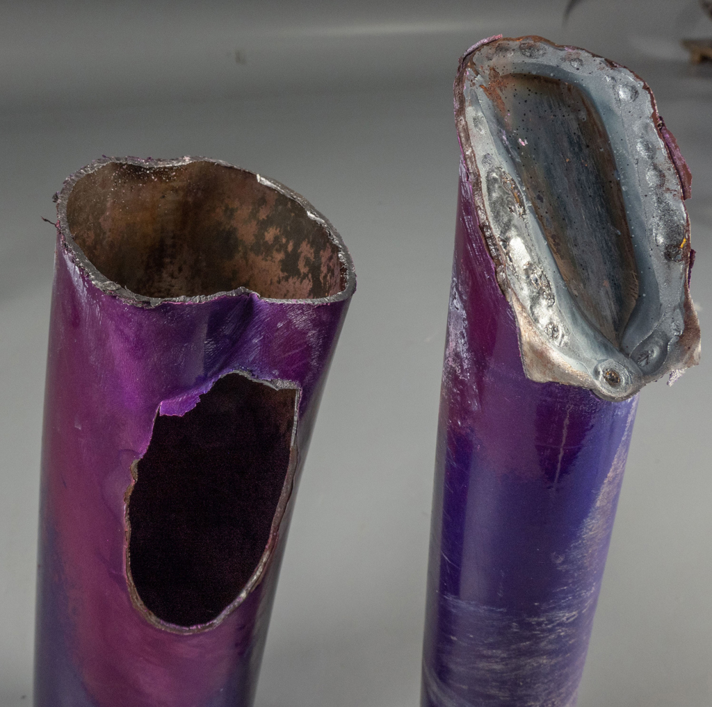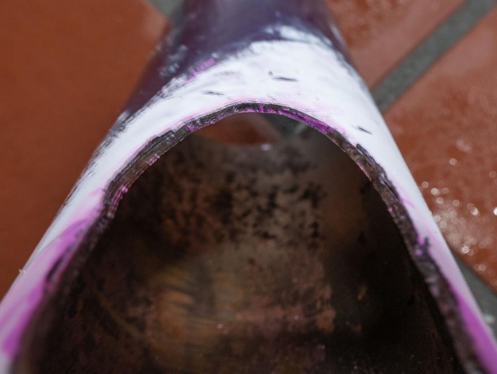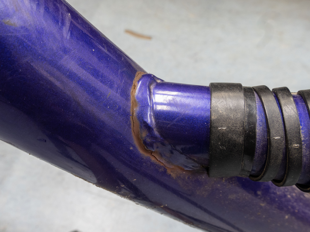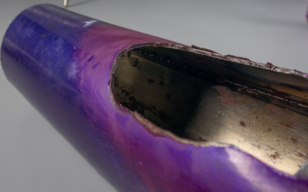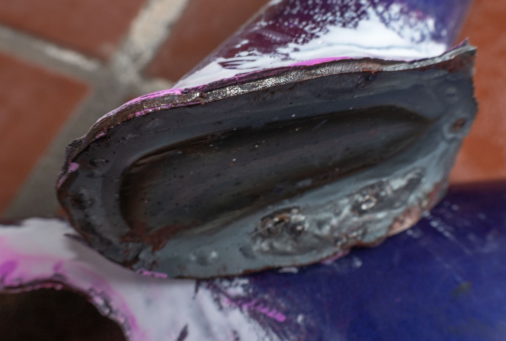 An der Schweißnaht war der Riss größtenteils komplett durch, auch die Risse im Hauptrohr waren komplett durch die Materialdicke gegangen.