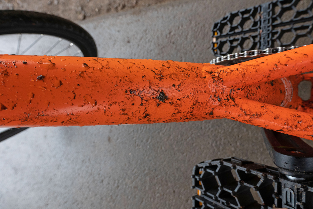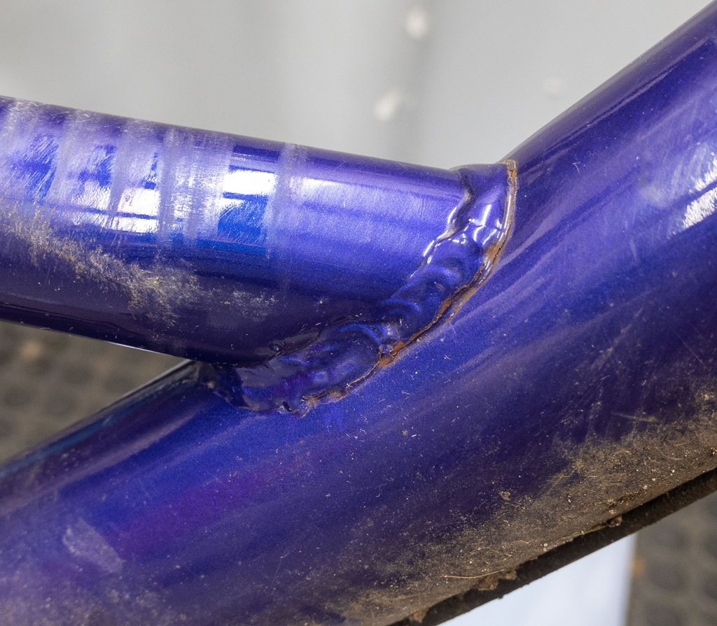 Auf den Bildern könnt ihr sehen, wie dünn die Rohre eines Fahrradrahmens sind.
