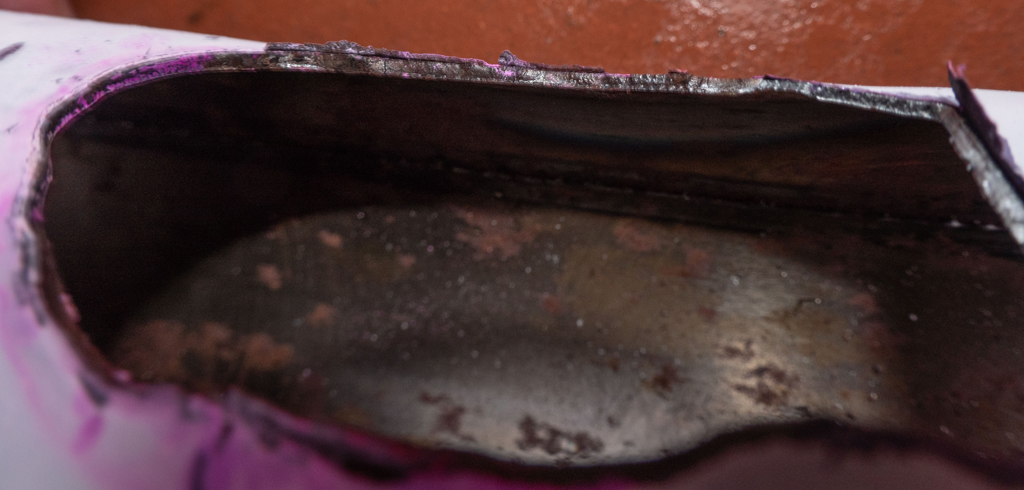 Als oller Werkstoffprüfer wollte ich der Sache noch genauer auf den Grund gehen, damit ich einschätzen konnte, ob ich noch ein paar Fahrten mit diesem Defekt machen konnte oder nicht.