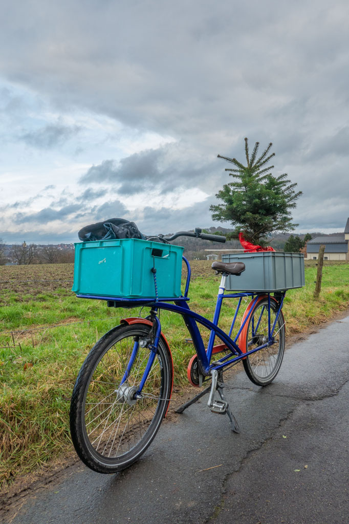 Mit gemischten Gefühlen fuhr ich meinem geretteten Weihnachtsbäumchen zu meiner Wiese, wo er hoffentlich gut anwachsen wird.
