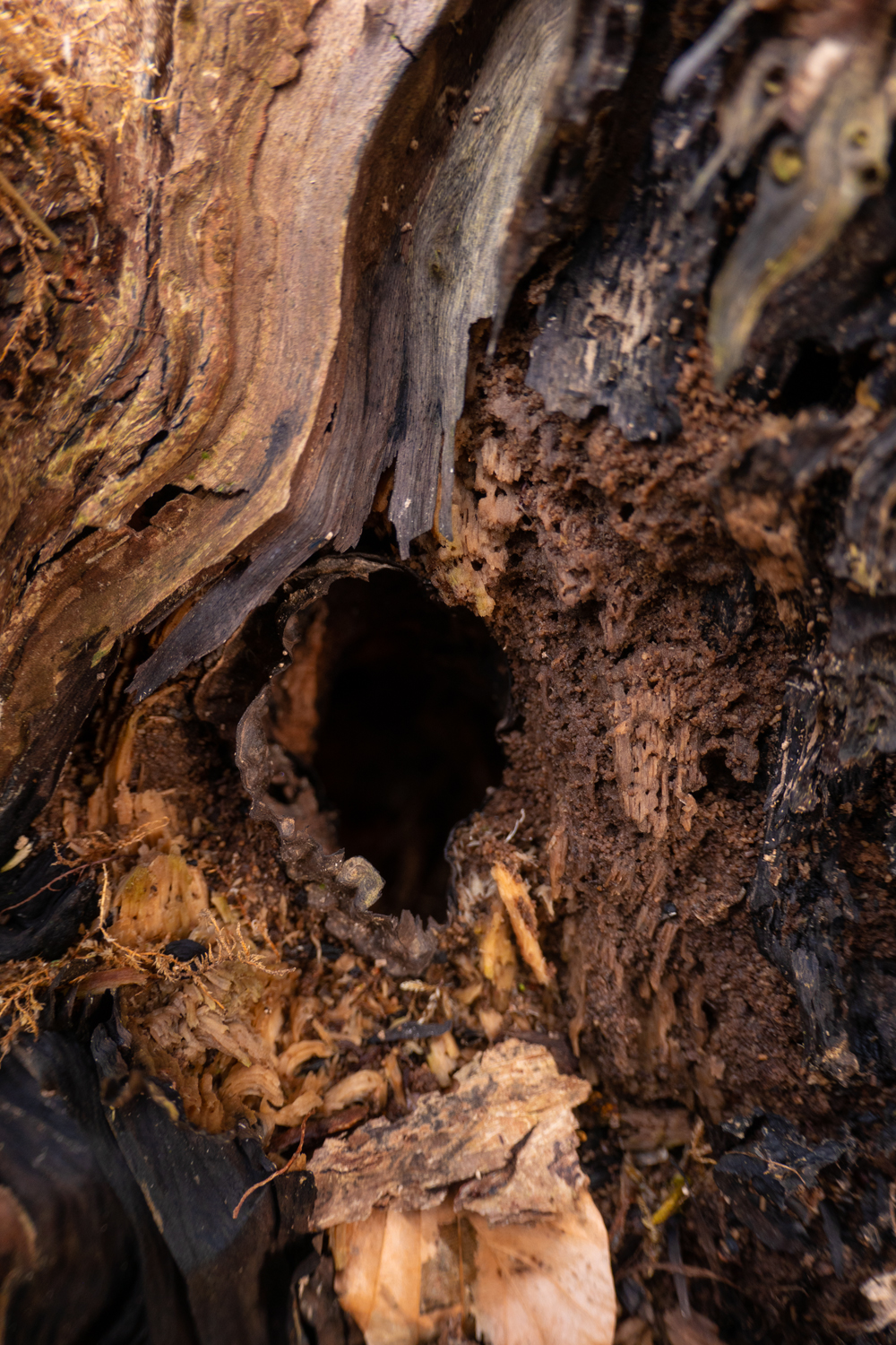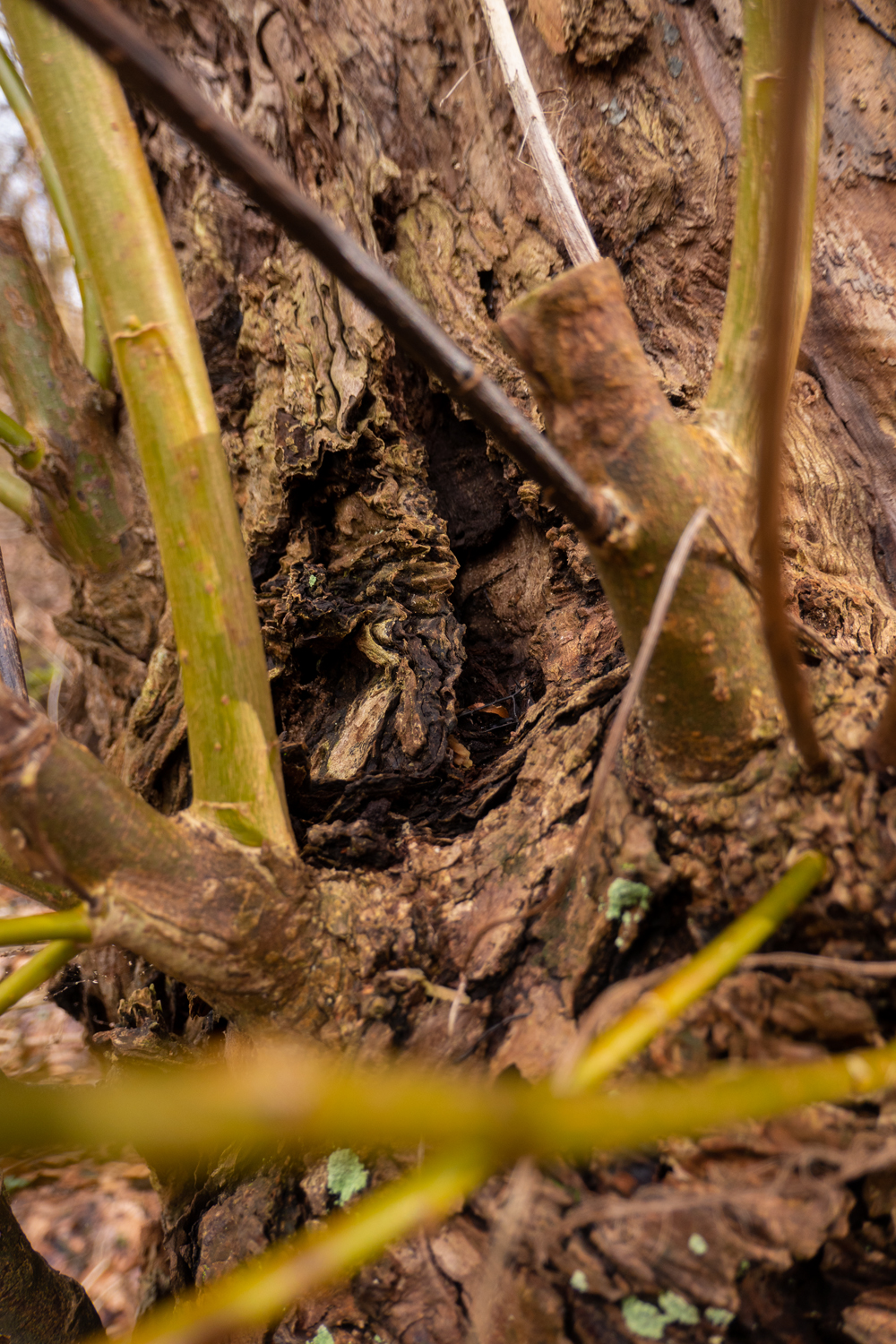 Besonders mein „Lebensretter“ ist interessant, halbseitig ist sein Stamm komplett abgestorben und morsch und die andere Hälfte treibt neue Äste aus.