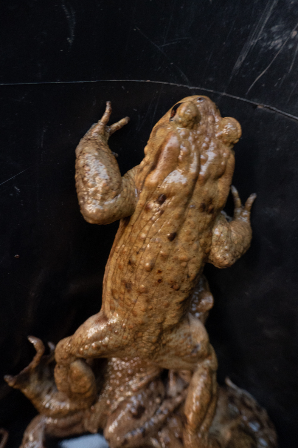 In früheren Jahren hatte ich morgens so manche der Kröten über die Straße getragen, aber oft war die Straße gespickt mit vielen Tieren, die die Überquerung nicht geschafft hatten.