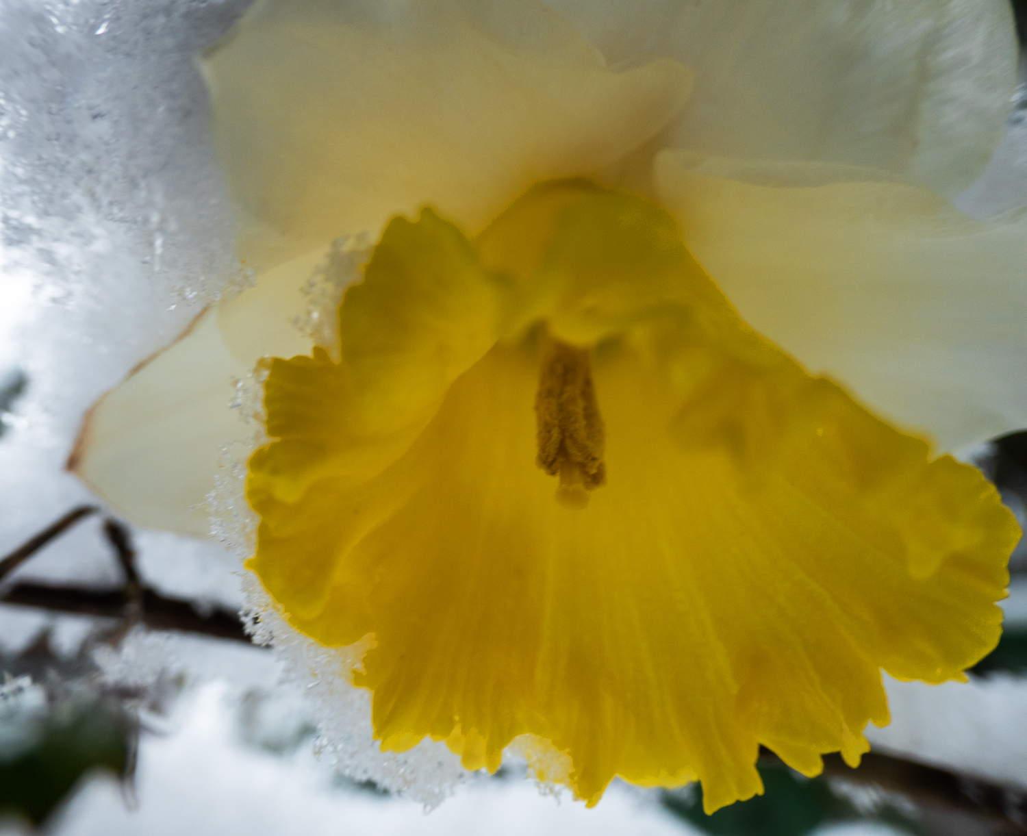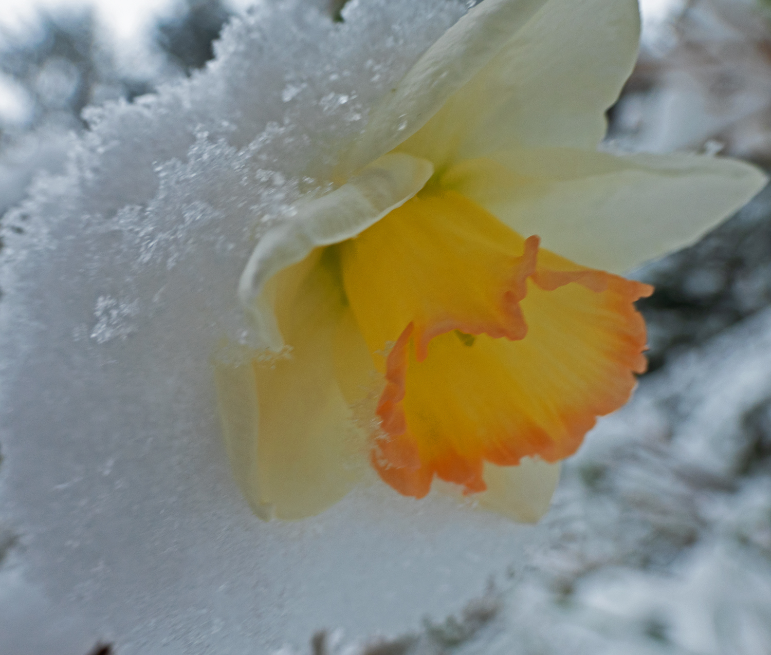 Die Narzissen hatten alle ein Schneemützchen auf.