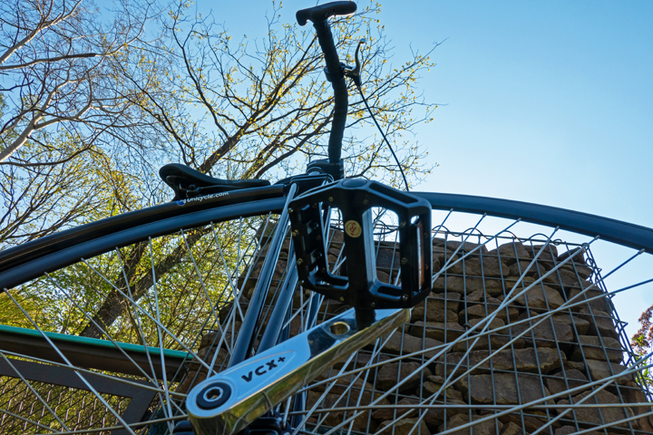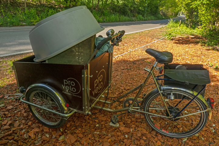 Auf einer ehemahligen Bahntrasse, die vor ein paar Jahren zu einem schönen Radweg umfunktioniert worden war, konnte ich mich wieder an die eigenwilligen Fahreigenschaften dieses Ungetüms gewöhnen.