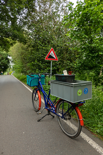 Unterwegs war ich mit der Düssellady, dem grünen Glöckchen, dem Hauptgewinn, das Bretzel war auch dabei, der blauer Lastesel und natürlich der Kübel als Regenspezialist.