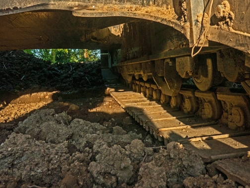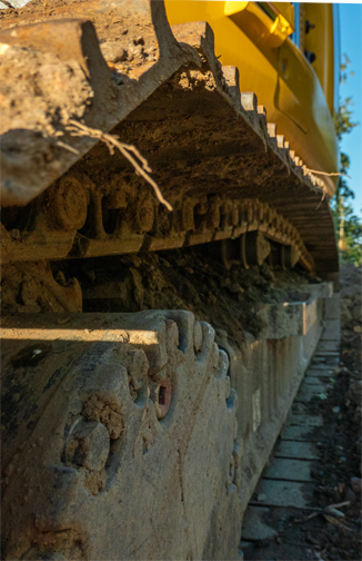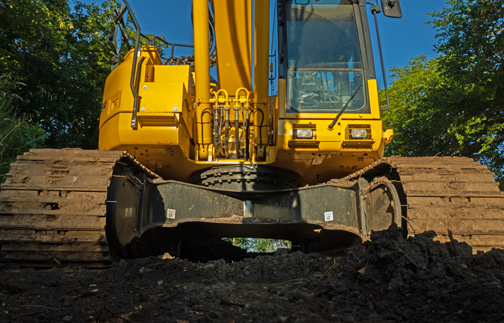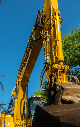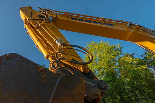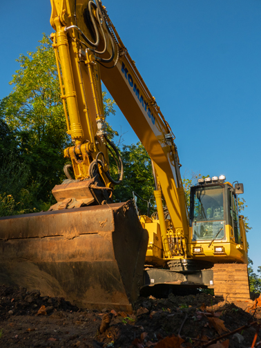 Auch der gelbe Bagger bot am frühen Morgen mal ein anderes Motiv zum schönen blauen Himmel.