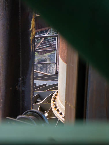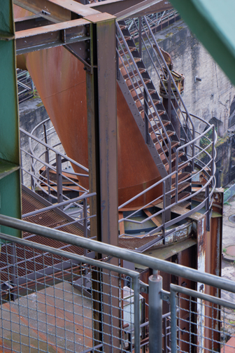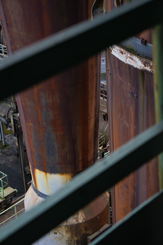 Die vielen verschiedenen Rottöne des Rostes und das Durcheinander der ganzen Stahlstreben, Rohre und der grün-türkisenTreppenstiegen ergaben immer wieder interessante Motive.