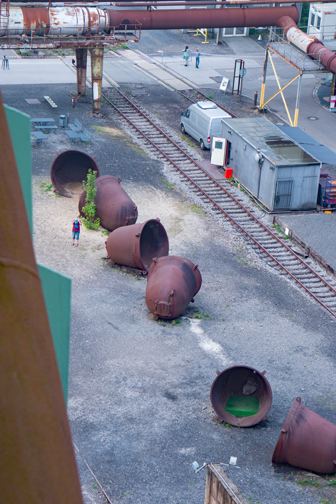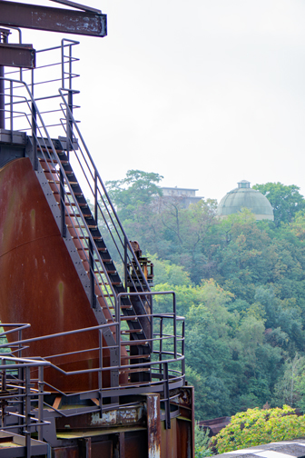 Heute kraxeln wir gemeinsam auf den 55m hohen und 80 Jahre alten Hochofen 3 hinauf.