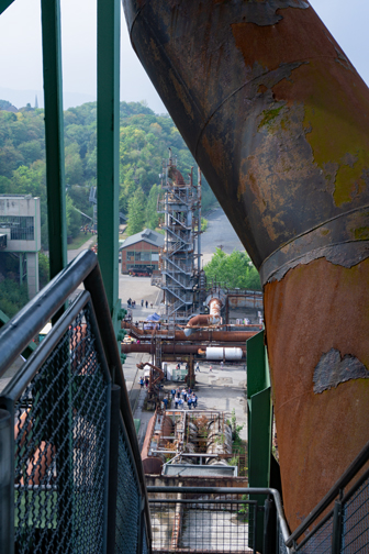 Am Hochofen ist ein Aufzug angebracht, der an jeder Besucherplattform hält, so können auch Menschen die Aussicht genießen, die nicht gut zu Fuß sind.