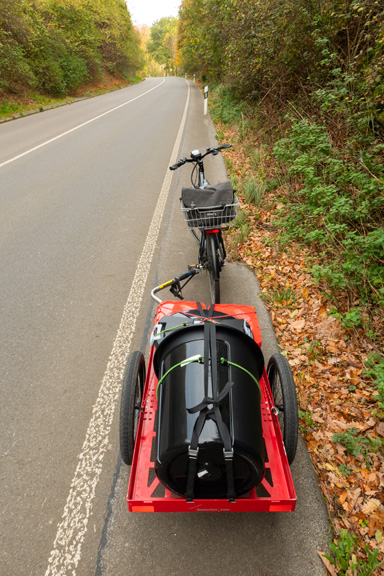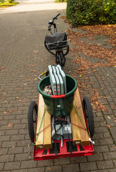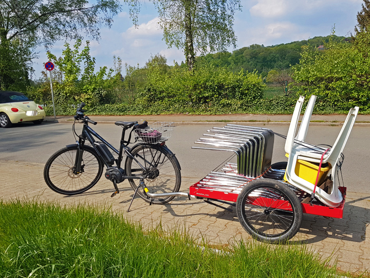 Überhaupt kann man mit Lastenfahrrädern oder eben auch mit Fahrrad und Anhänger jede Menge transportieren.