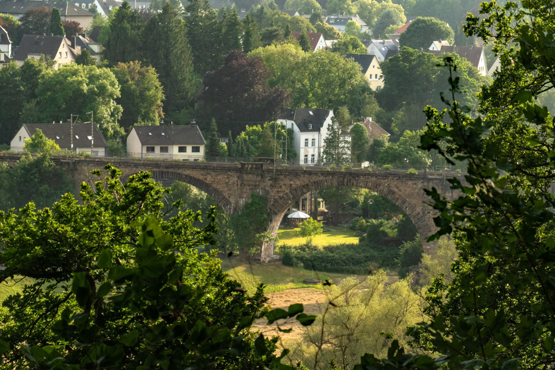 Beim herum fotografieren war die Zeit wieder im Nu wieder vergangen und die Sonne stand schon sehr tief. Dadurch ergab sich wunderschönes Licht zum Ruhr-Viadukt Witten.