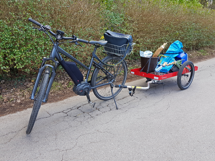 Das erste Foto zeigt meine Schwester mit ihren modernen E-Lastenfahrrad, der Hauptgewin (E-Bike) dient bei mir als Zugmaschine und auf den unteren drei Bildern sind meine rein mechanischen Lastenfahrräder zu sehen.