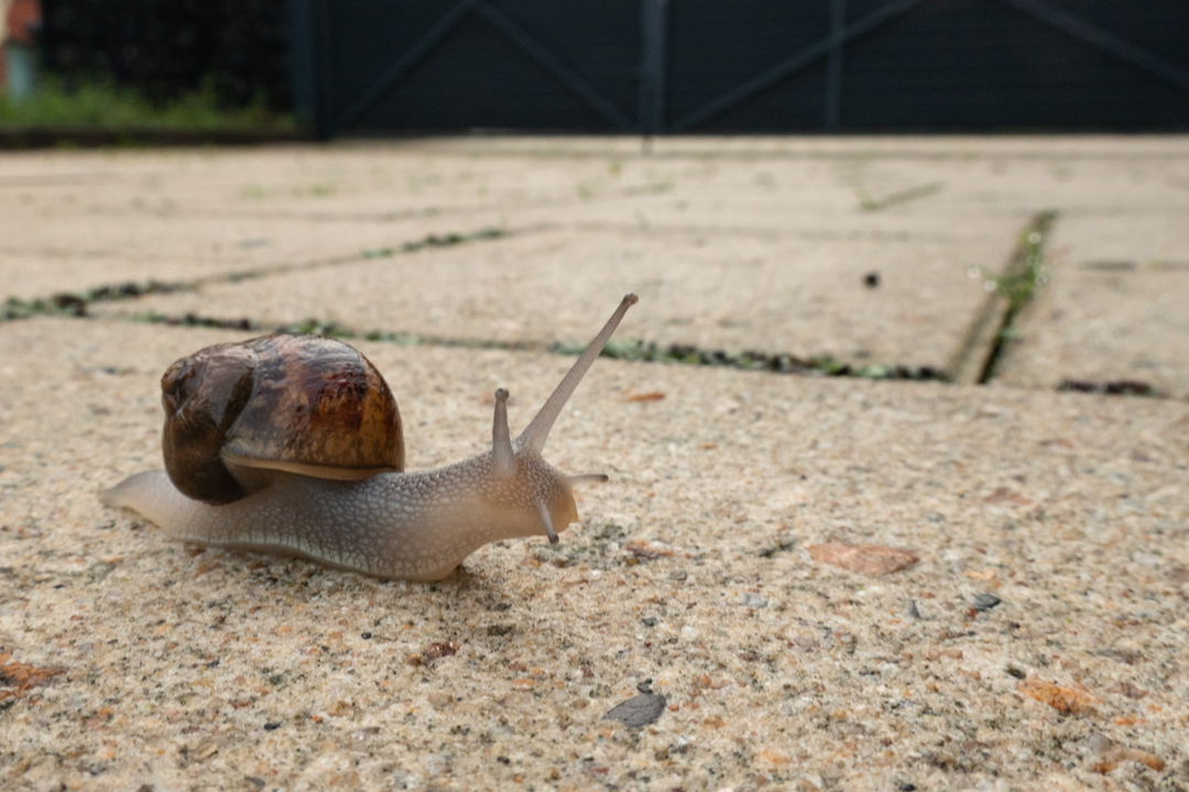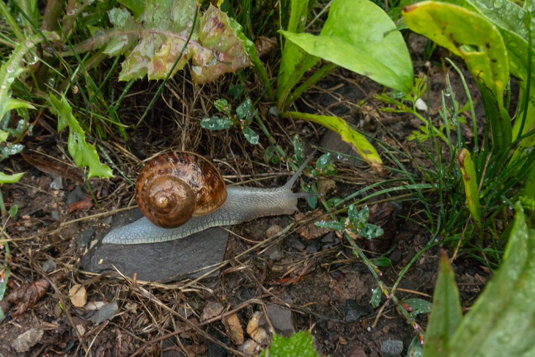 Morgens hatten mich in der letzten Woche Weinbergschnecken (Regenliebhaber) auf dem Hof begrüßt.