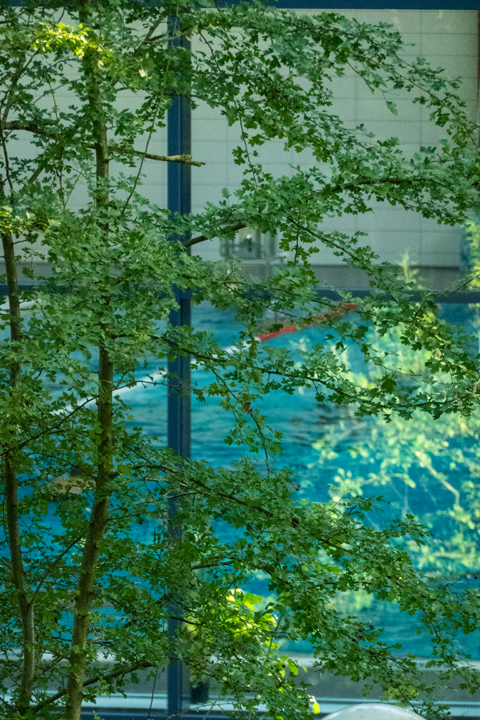 Deshalb hatte ich von außen dieses Bild gemacht, wo du bei genauem hinsehen, das Schwimmbecken im Hintergrund erkennen kannst.
